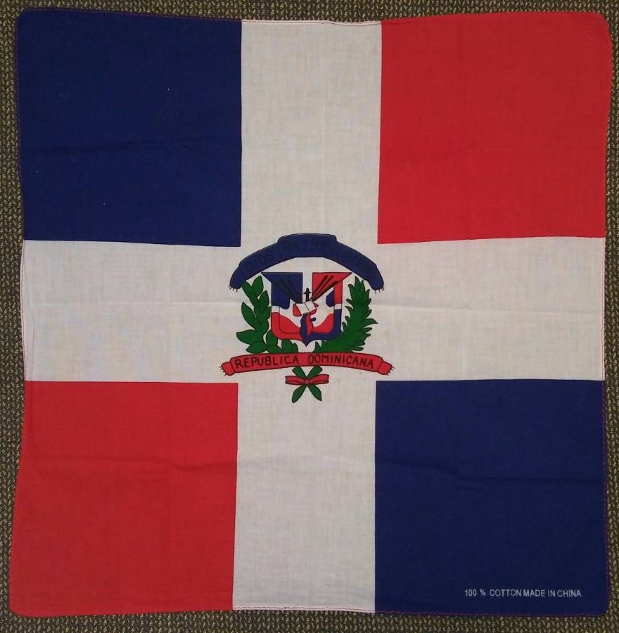 14. Бандана котонова з зображенням прапора Домініканської Республіки (República Dominicana), розмір 49 х 49 см, легке б/в: незначні плямки, ціна 30 грн.