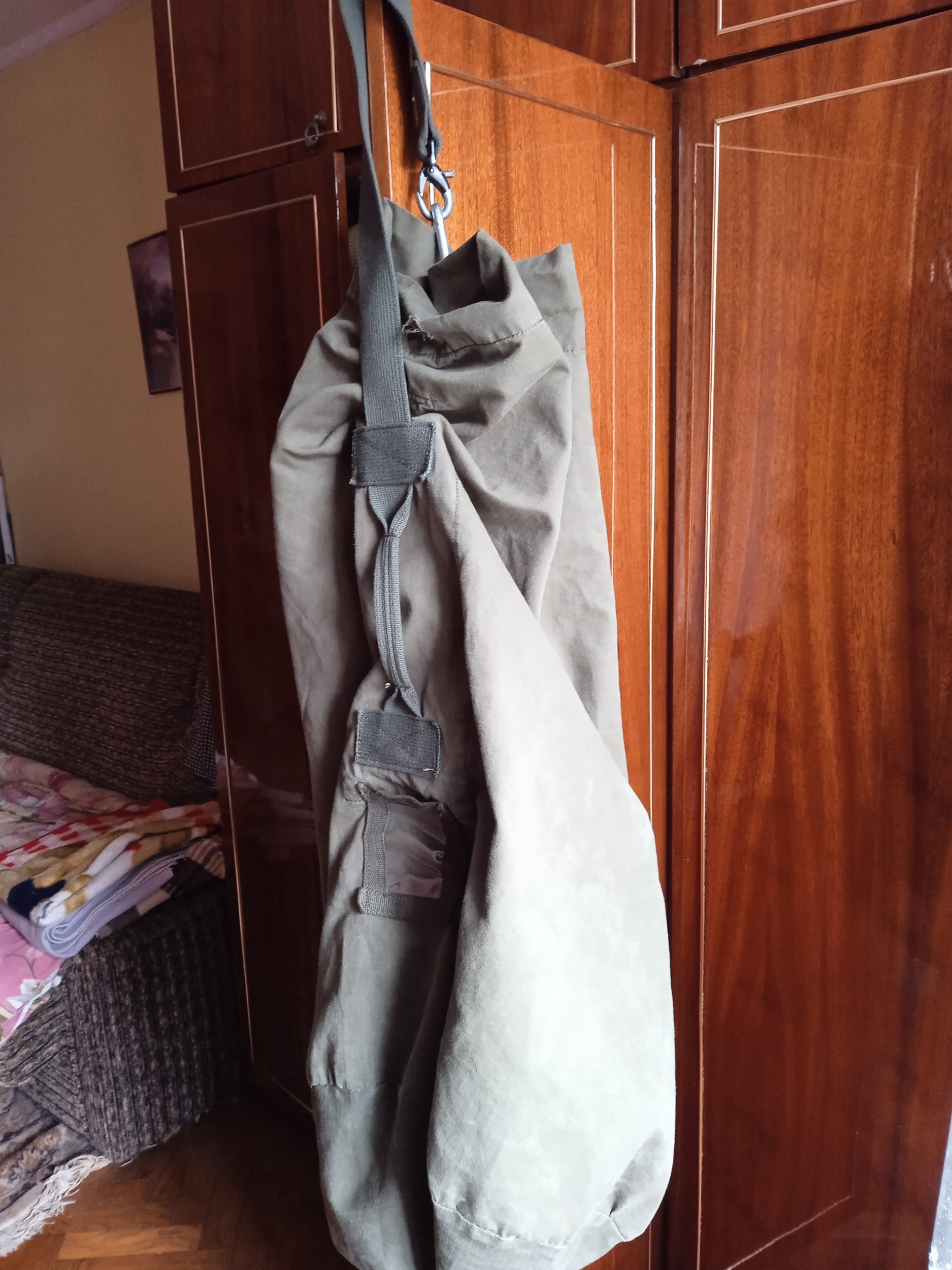 Без забруднень і поривів колір - олива, обєм -90л. розміри -- 860*360 ціна --700грн--- 560 грн пересилка новою поштою оплата приват Утяжка люверсів звичайним карабіном.