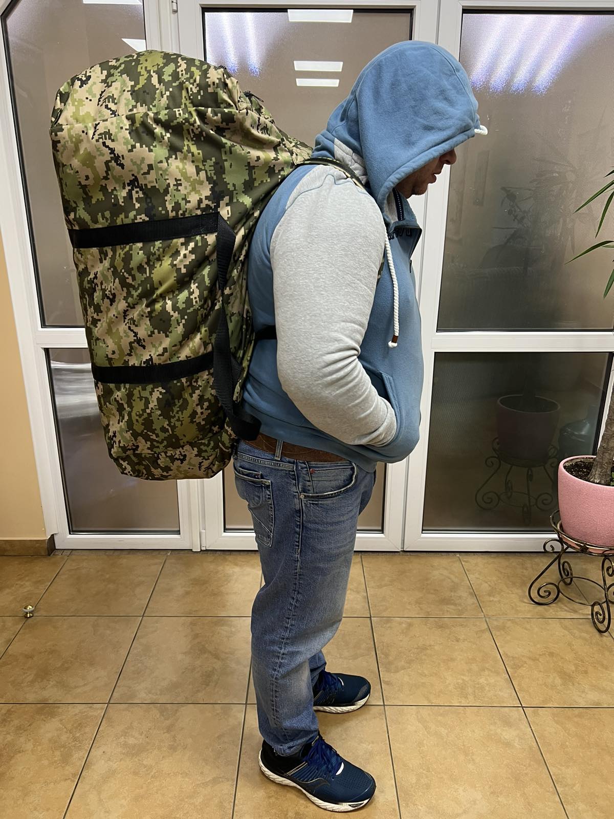 Сумка-баул рюкзак пиксель 100L. Сумка транспортная МАТЕРИАЛ CORDURA 1000D Описание: Ткань Кордура 1000 Размеры: 750х400х350 (100л) Сумка представляет собой вместительное изделие из крепкой ткани с основным отделением и наружными карманами, которые застегиваются на «молнию». Имеет наружные ручки, плечевые лямки. Основное отделение закрывается на центральную застежку «молнию». Вдоль центральной застежки из ткани верха сформирован клапан, накрывающий молнию. Надежная, прочная и вместительная. Цена 1350 грн