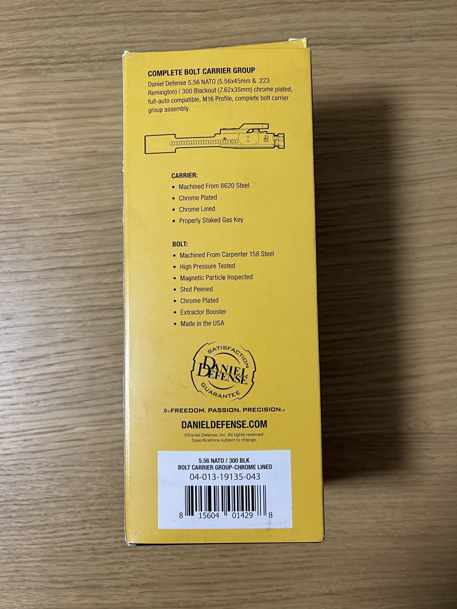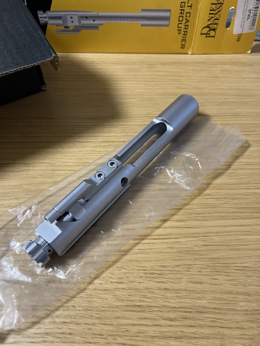 Добрый день, Уважаемым Камрадам !!! Продам редкого гостя в наших широтах затвор от Daniel Defense хромированный под АР15 калибры 223 и 300Blk. Покупался в прошлом году под сборку аппера в 300Blk но руки так и не дошли собрать аппер. Настрел условный, три патрона в разрешительной и 10шт в 233 попробовать работу затвора и автоматики / все работает шикарно. Хромированная затворная группа Daniel Defense 5.56 NATO (5.56x45mm & .223 Remington) / 300 Blackout (7.6x35mm) имеет профиль М16. Рама: - изготовлена из стали 8620; - хромированное покрытие; - идеально стыкуется с газоотводом; - сделана в США. Затвор: - изготовлен из стали Carpenter 158; - протестирован под высоким давлением; - прошёл магнитную дефектоскопию; - прошёл дробеструйную обработку; - хромированное покрытие; - сделан в США. Моя цена лот продан Продажа только через разрешительную. Все предложения и резервы в личку ,желающих обсудить цену приглашаю в личку,просьба в теме не флудить.