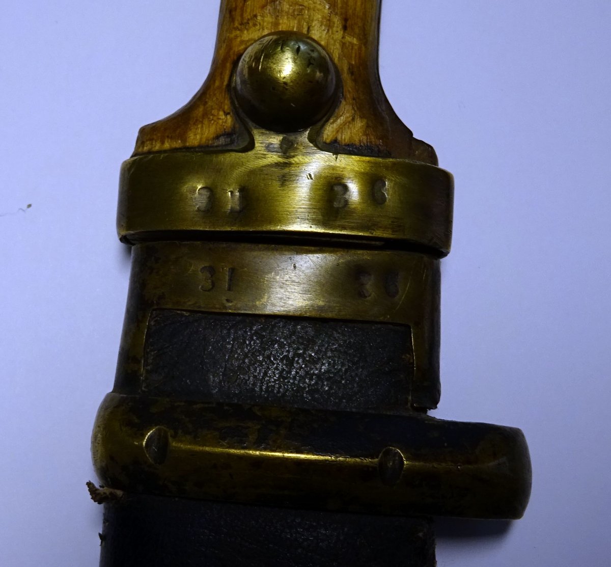 Как говорится - что вижу - о том и спою.Сам клин и рукоять - оригинал.Кожа на ножнах - скорее-всего тоже..Вот стакан ножен - новодел...