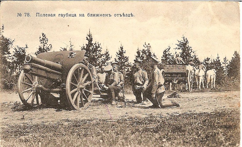пушка.jpg Тяжелая полевая на конной тяге артиллерия в РИА была.Мортирные дивизионы переименовывались в гаубичные к концу войны.Там и бебуты у обслуги имелись.