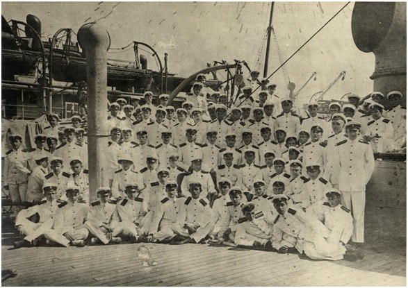 Гардемарины на встрече по случаю 50-летия 2-го Орловского плавания (кадеты ОБКК 2-й слева Борис Афросимов, 2-й справа Николай Недбаль) США, январь 1969 г.