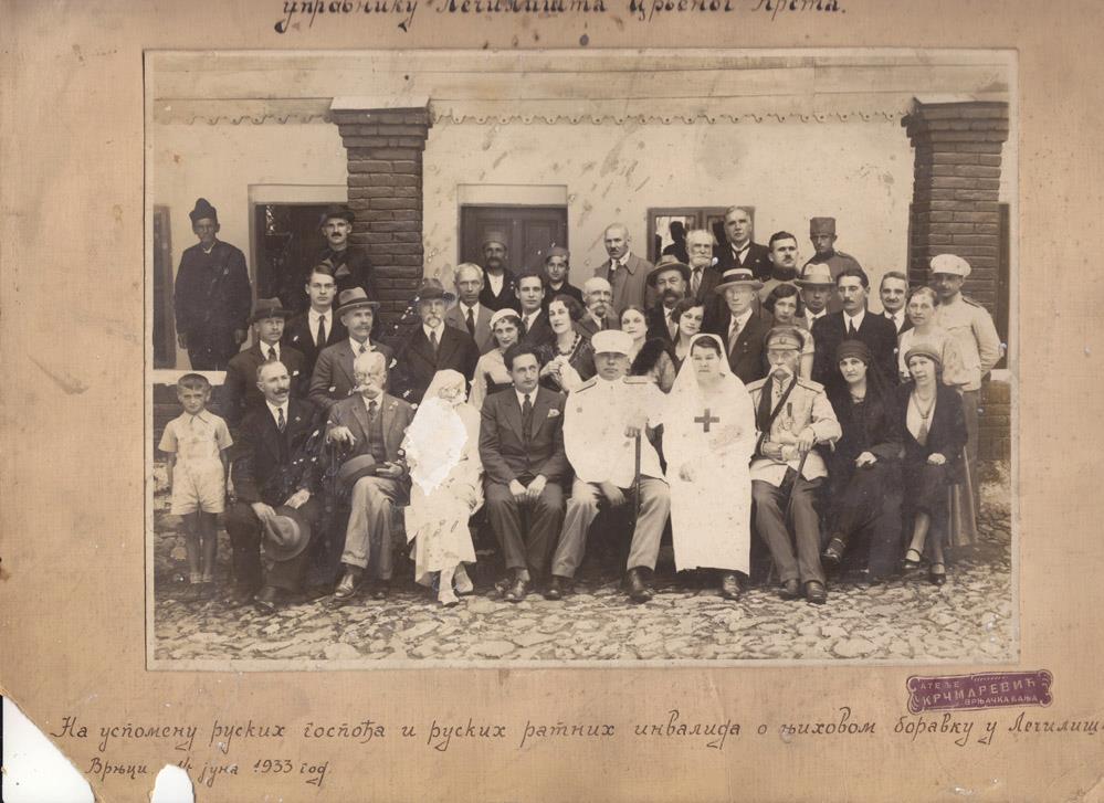 Сербия, 1933 год: полковник В.Н. Стреха, Е. Стороженко, А. Буковской, Н. Папчинский, В. и Н. фон Ремер, А. Виноградов, А. Андреевский, Л. Марченко, Б. Степанов, А. Нижницкий, Галина Курковская, П. Полищук, А. Иванова, Е. Иванисов, Л. Дацикова, Г. Семенов, В.П. Агапеев.