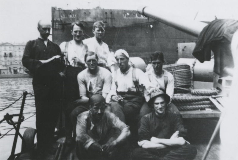 Офицеры на юте «Китобоя» после угольной погрузки перед уходом из Копенгагена. Июнь 1920г.