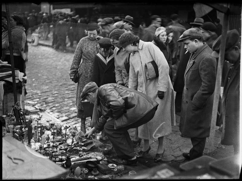 Блошиный рынок в Париже. 1926-1935 г.г. На нем частенько российские эмигранты продавали фамильные ценности и безделушки, которые удалось вывезти из России.