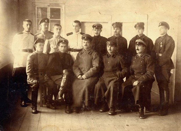 Артиллеристы в Болгарии по прибытии из Галлиполи. В центре полковник Протасович, выпускник Михайловского Артиллерийского училища 1905 года. Фотография 1921г.