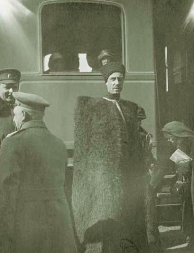 Генерал П.Н. Врангель у штабного вагона. Справа Н.Котляревский - личный секретарь Врангеля, 19.03.1921 г. станция Земун
