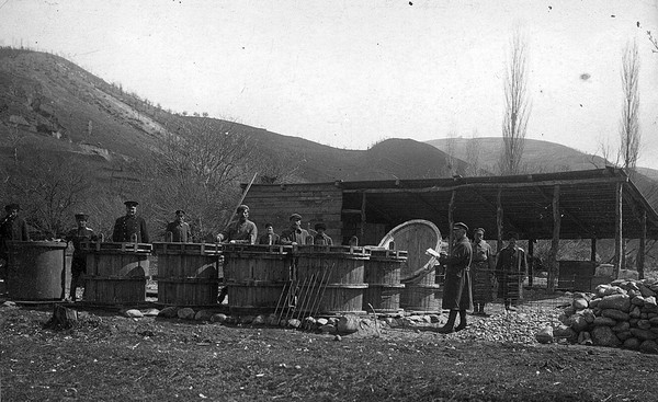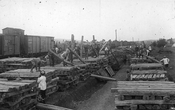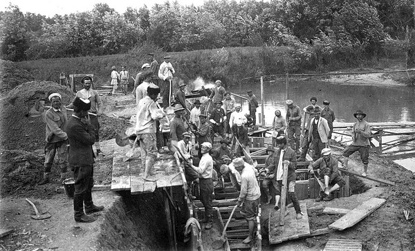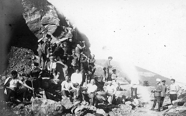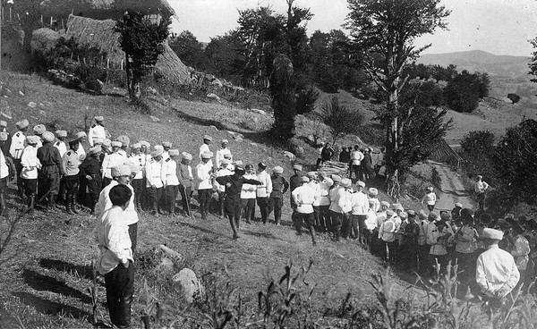 Врангель и Кутепов (в центре) на постройке 17-го км ж.д. Кральево-Рашка (Кралево, Сербия, 22.10.1923г.)