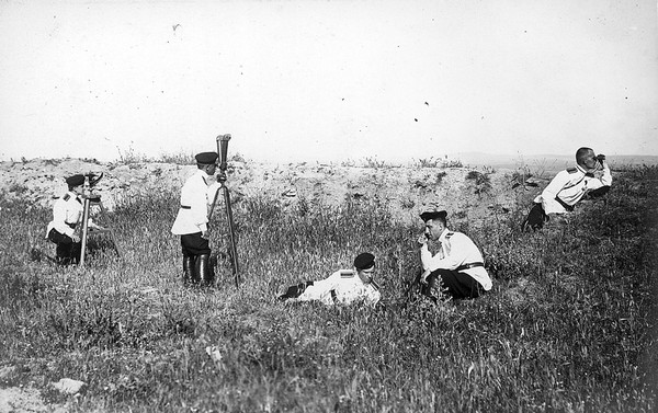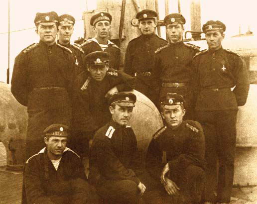 Фотография господ Старших Гардемарин 1-ой роты во Владивостоке, окончивших полный курс Морского училища и в соответствии с Приказом № 77 от 11 апреля 1920 года по экзамену в Сингапуре произведенных в Корабельные Гардемарины. Приказ подписал М.А. Китицын. На вспомогательном крейсере «Орел» 20 апреля 1920 года, в день Святой Пасхи. В этот же день С.С. Аксакову (крайний слева в 4 ряду) исполнился 21 год.