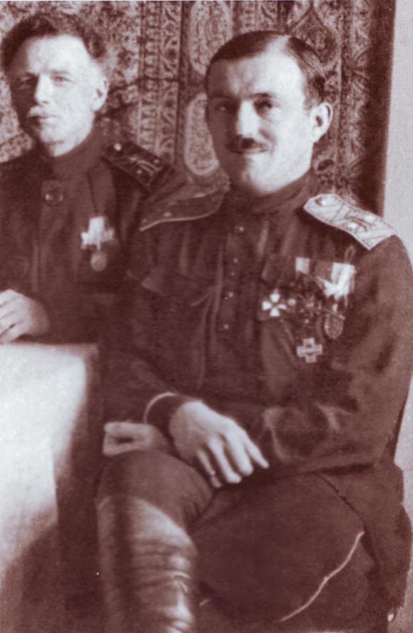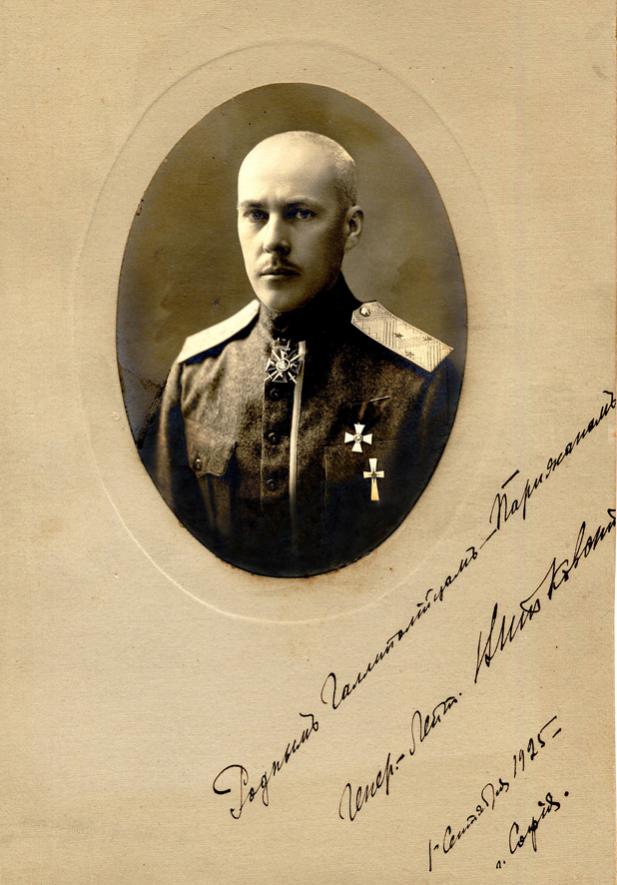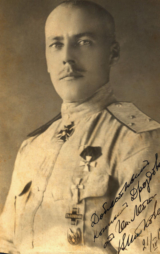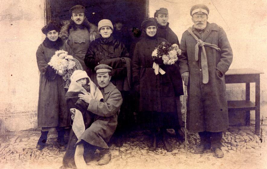 Перед переездом в Софию семьи генерала Туркула и Манштейна. Тамару Туркул держит неизвестный дроздовский офицер.1921 г.