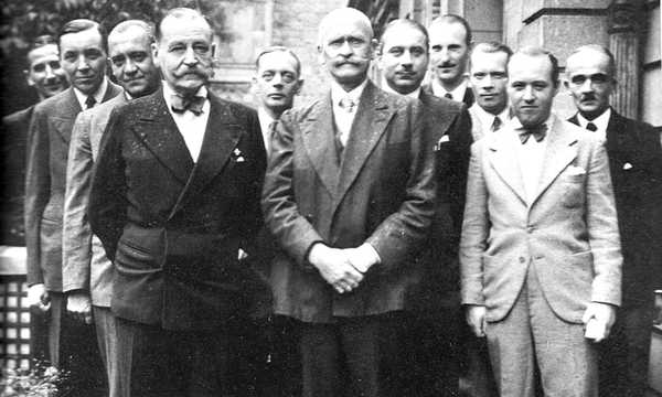 Югославия. Сидят (слева направо): ген. Туркул, командир тяжелого артиллерийского дивизиона генерал-майор П.Н. Эрдман, командир Дроздовской артбригады ген-майор Ползиков, начальник Константиновского военного училища ген-майор Е.А. Российский, командир 8-го Донского казачьего полка ген-майор Г.Е. Шведов, начальник Корниловского военного училища ген-майор М.М. Зинкевич, ген-майор И.И. Сниткин, помощник начальника Дроздовской дивизии К.А. Кельнер. Стоят: поручик Думбадзе, подполковник Червинов, полковник Алексеевского полка А.Ю. Кривошей, ген. В.В. Манштейн,полковник Кобаров, командир Марковской артбригады ген-майор Л.Л. Илляшевич, начальник артиллерийской школы С.Н. Власенко, капитан Бровкович, подполковник Федоровский.