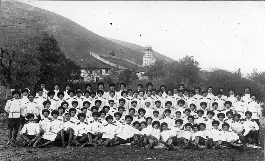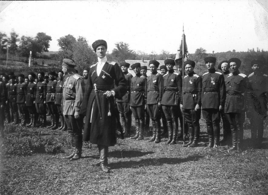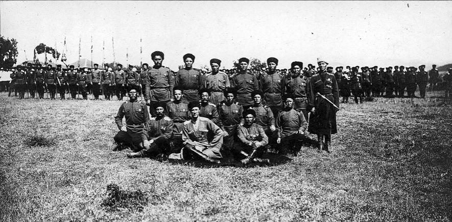 Главнокомандующий со своими одностаничниками ст. Константиновской Лабинского отдела после смотра 1-го Св. Куюанского полка 1923 г.