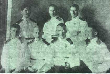 Крымский Кадетский Корпус. 1924/25 учебный год. 5-й выпуск. Редакция журнала "Лодырь". Стоят слева направо: В.у.о. Никифор Андреев, кад. Алексей Нагоров, В.у.о. Александр Майоров. Сидят слева направо: В.у.о. Владимир Кузнецов, кадеты Борис Ходолей, Сергей Якимович (редактор, "Маэстро") и В.у.о. Н. Тищенко-"Слон" (карикатурист). Анонимно сотрудничали в журнале: корнет Кн. Н. В. Кудашев и кадет Н, Февр, ставший потом известным журналистом.