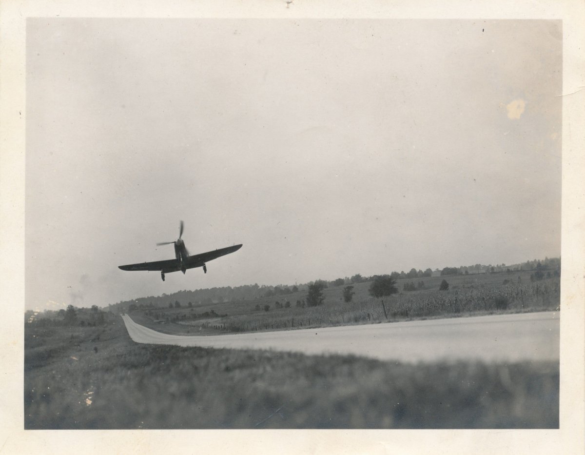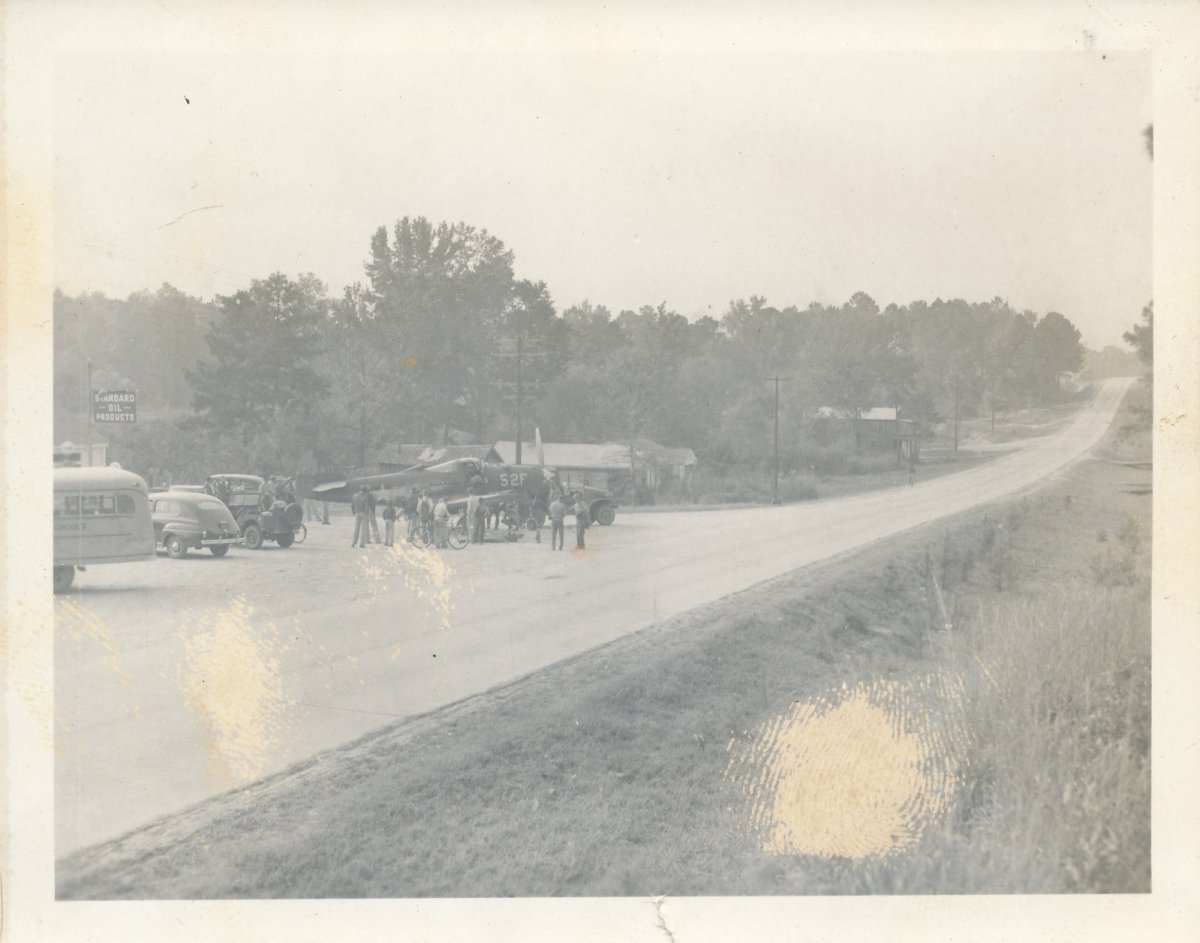 Airplane emergency lands at Gas Station, Key Field, Mississippi, June 1942.