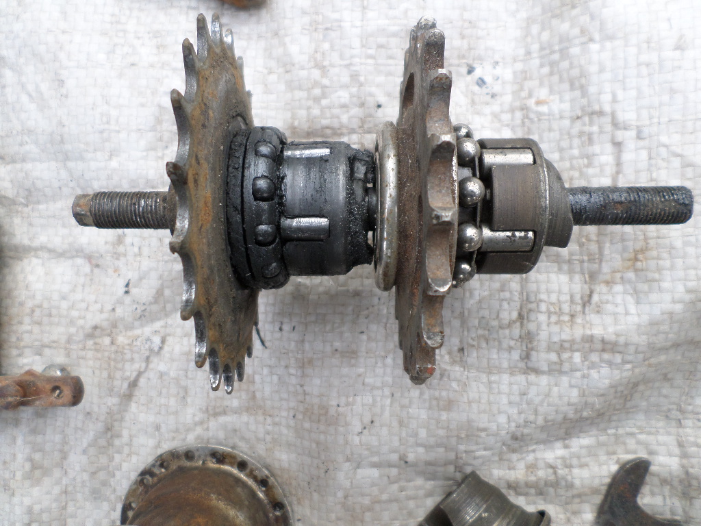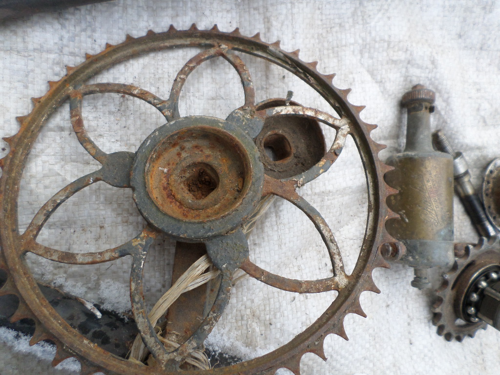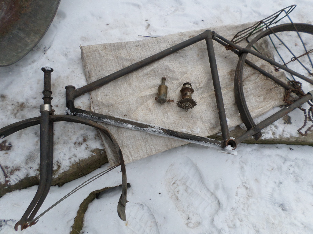 Вилка,крылья,багажник,пятерик на фото слева,кассета на 3 шестерни не его.На всех мелких деталях должно быть клеймо.Втулка 32 год.С ув.
