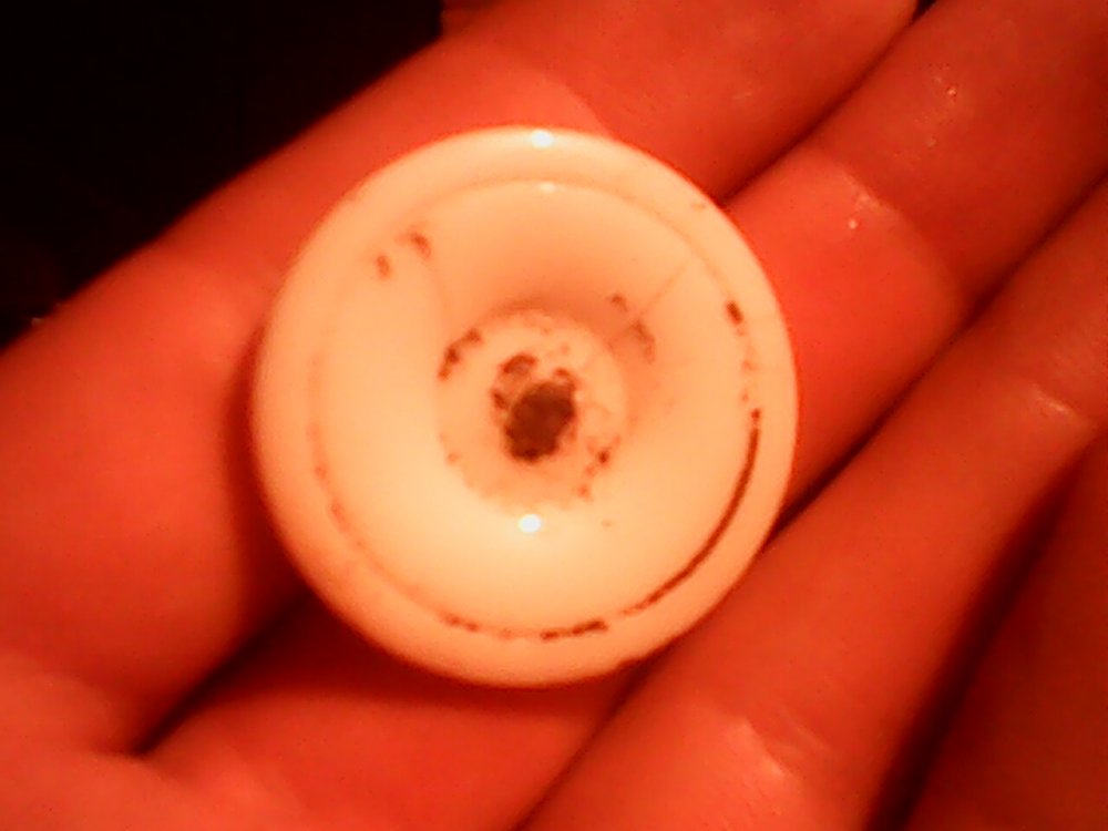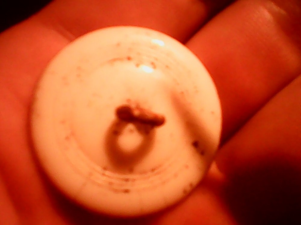 вобщем такая история шол по окопу сигнал копаю отстрел гильзач. потом показалась материя гнилая втруху стал кавырятся в ручную вобщем выбрал 8 крупных 3см диаметр, и 1 2,2см, пуги белые по середине дырочка через нее вставлена проволочка с шляпкой как у гвоздика и с другой загнута колечком. вобщем что за пуги от чего и имеют ли вообще отношение к войне. материал пуг не то пластик не то фарфор вобщем тежоленькие качественное фото сейчас сделать не могу