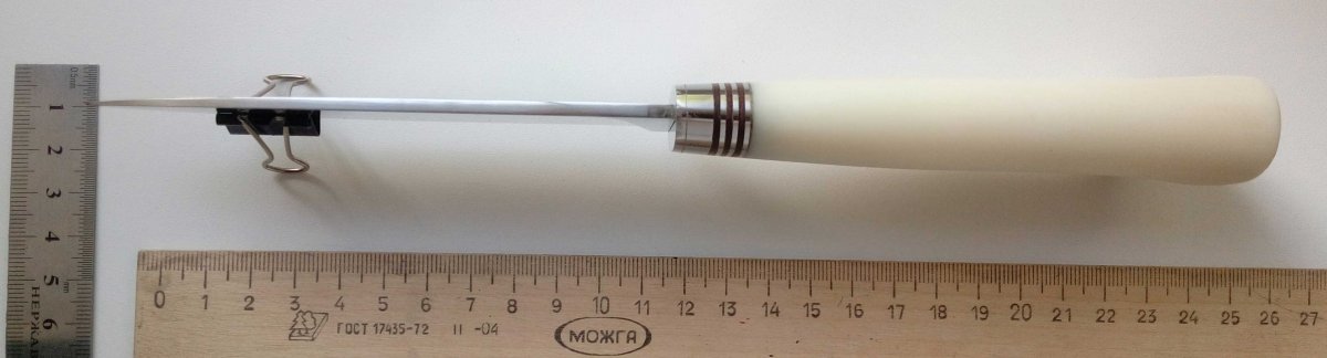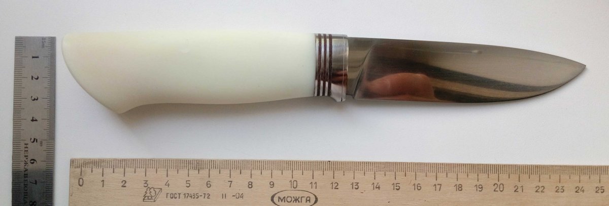 Сталь 40x13,твердость 56 ед. Рукоять-нержавейка,текстолит, капронит. 800 гривен.