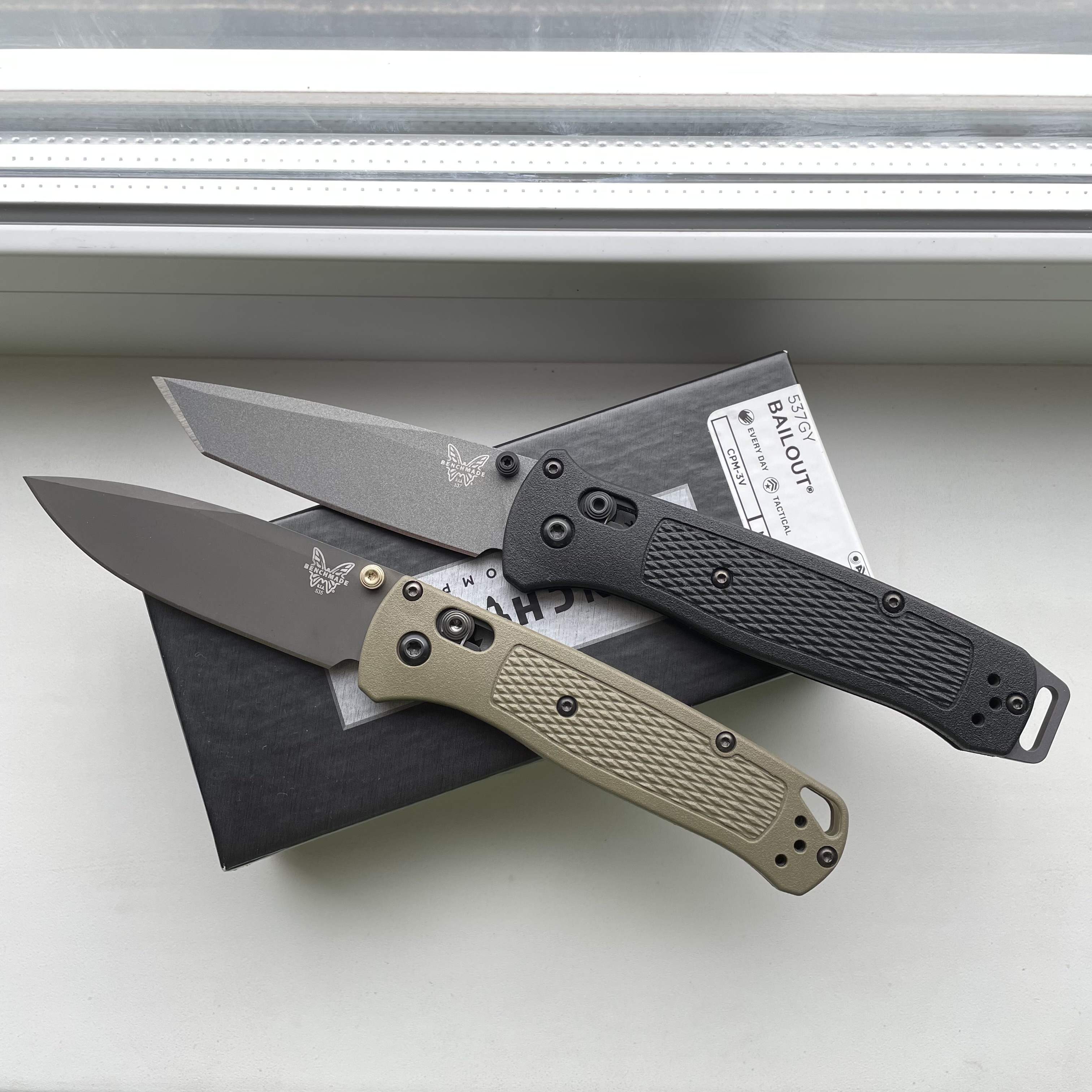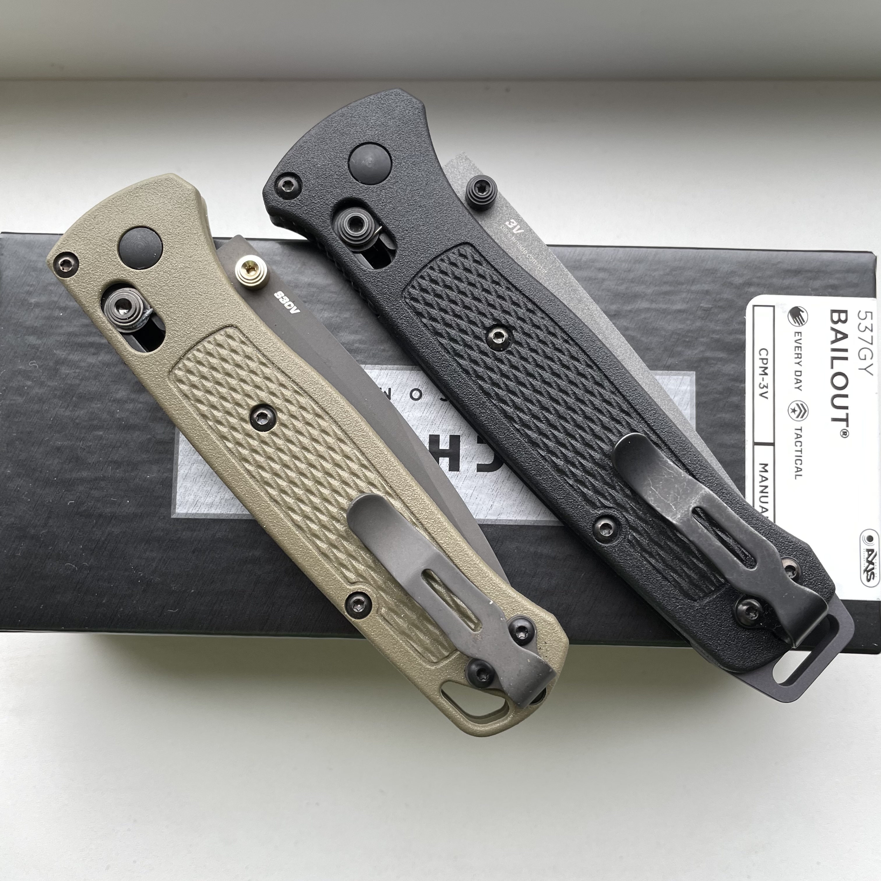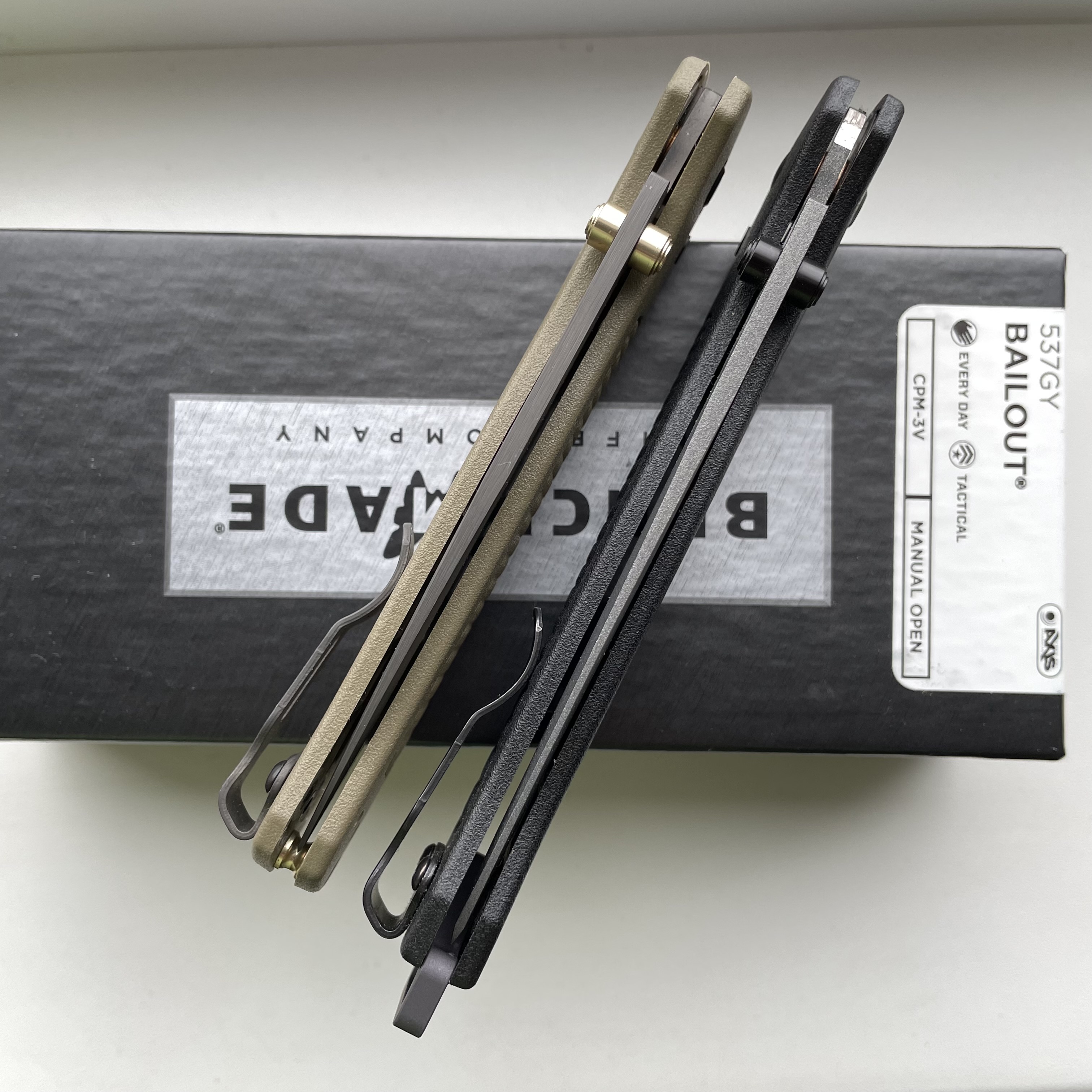 Benchmade 537GY Bailout 3V (стан нового) Ціна - 7000грн. ТТХ: Марка сталі - 3V Довжина клинка - 86мм Замок - AXIS Lock Загальна довжина - 205 мм Твердість леза - 58-60 HRC Товщина клинка - 2,3 мм Матеріал руків'я - Grivory Фінішна обробка - Ceracote Кліпса - 2-х стороння, глибокого носіння, Tip-Up Вага - 58г Країна виробник - США #Benchmade #Bailout #3V