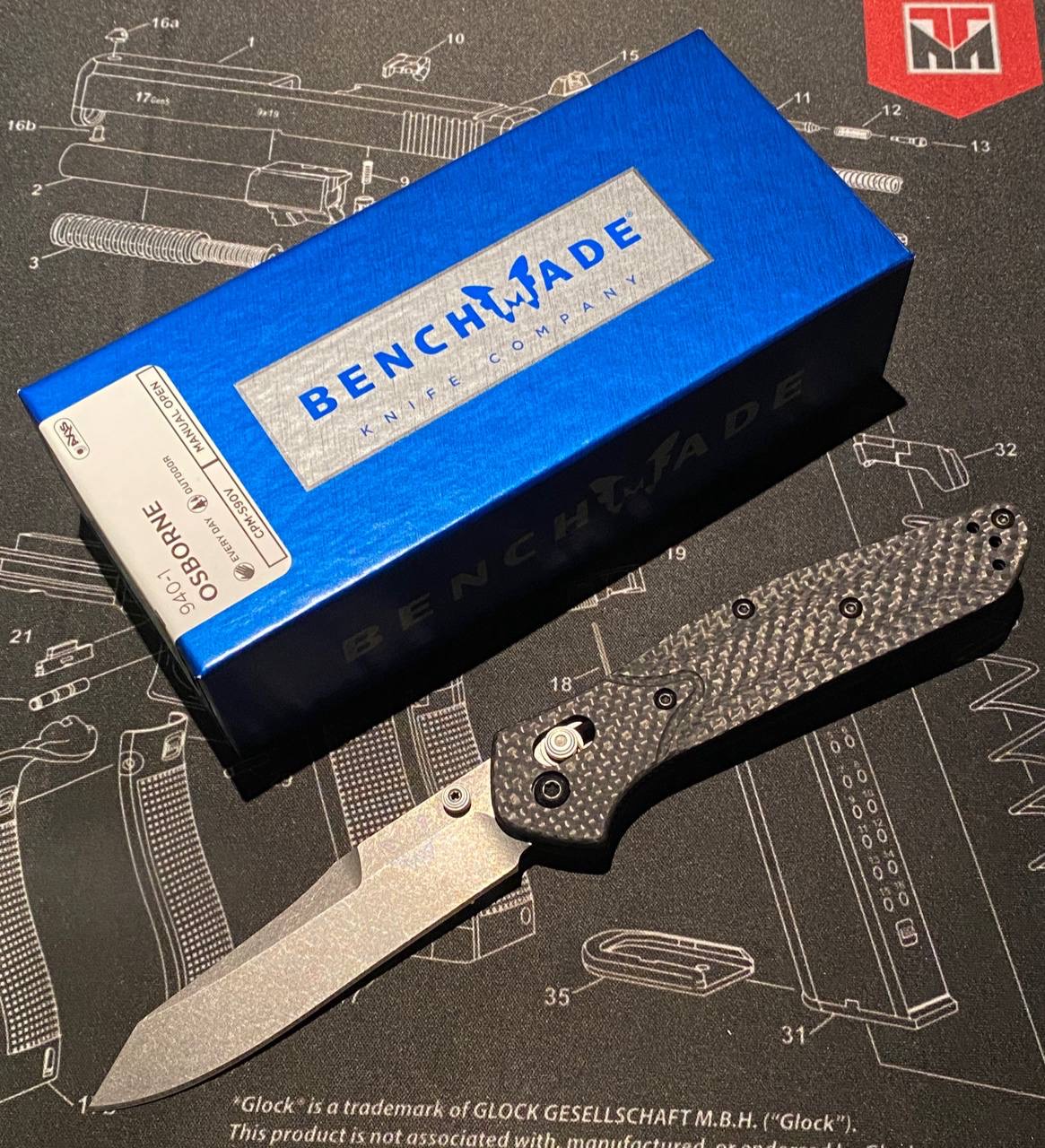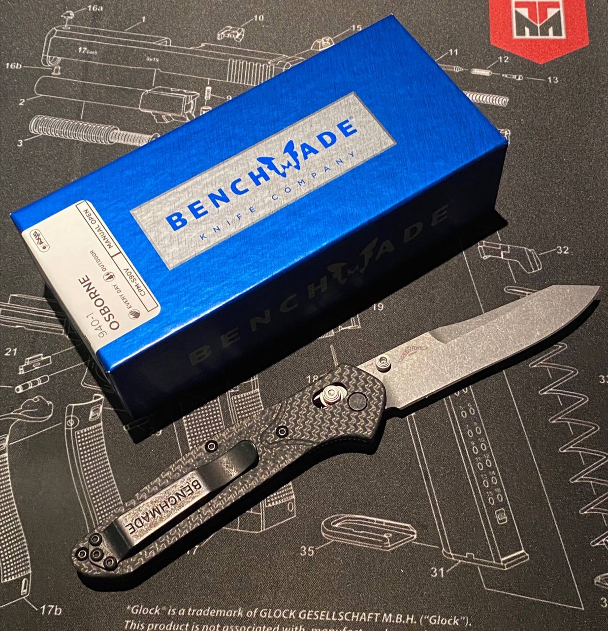 Benchmade 940-1 Osborne Design Загальна довжина: 200 мм Довжина клинка: 86 мм Товщина обуха: 2.9 мм Сталь: CPM-S90V Вага: 80 г Абсолютно новий ніж. Механіка в порядку. Продано