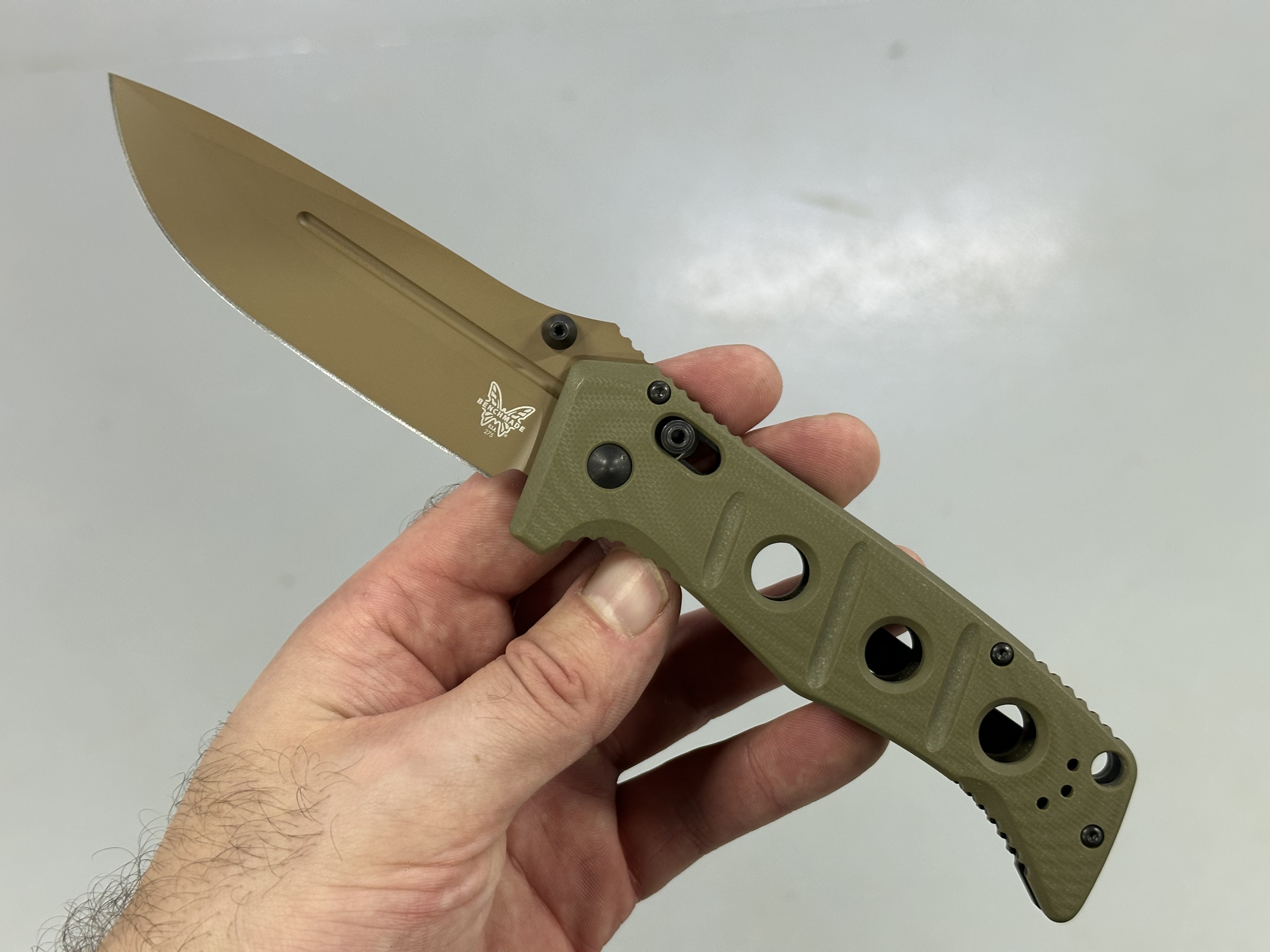 Продолжая наследие древней платформы суперпрочных тяжелых военных ножей серии Adamas®, новый 275 Adamas® является эргономичной тактической составляющей, поддерживающей традиции повышенной надежности, заложенные в его предшественниках. Adamas® крепок как гвоздь с введением новой стали марки CPM-CruWear® и обновлением цветовых конфигураций Сталь CPM® Cru-Wear™ – инструменальная порошковая сталь воздушной закалки, выпускаемая американской металлургической компанией «Crucible Industries» (США). Сталь обладает отличным сочетанием высокой износостойкости и прочности. Эта сталь легко обрабатывается в отпущенном состоянии (по параметрам похожа на D2) и ведет к минимальным отклонениям в получении желаемой жесткости. Cru-Wear применяется в работах, требующих более высокой износостойкости, чем сталь D2, большей прочности, чем сталь М2. Данная сталь сильно подвергается коррозии во влажной среде, поэтому требует тщательного ухода или клинок должен иметь антикоррозионное покрытие, чем, собственно, и дополнена модель 275. Этот Adamas® настолько мощен, насколько это возможно. Характеристики Нож Benchmade Sibert Adamas 275FE-2 Толщина клинка, 3.6 Длина клинка, 97 Твердость клинка 63-65 HRC Общая длина, 223 Тип замка Axis Lock Страна регистрации бренда США Страна-производитель товара США Стоимость: 13000 грн
