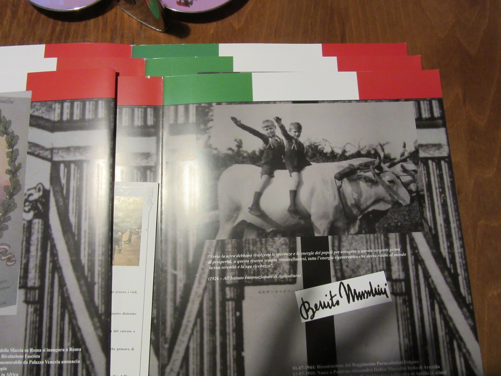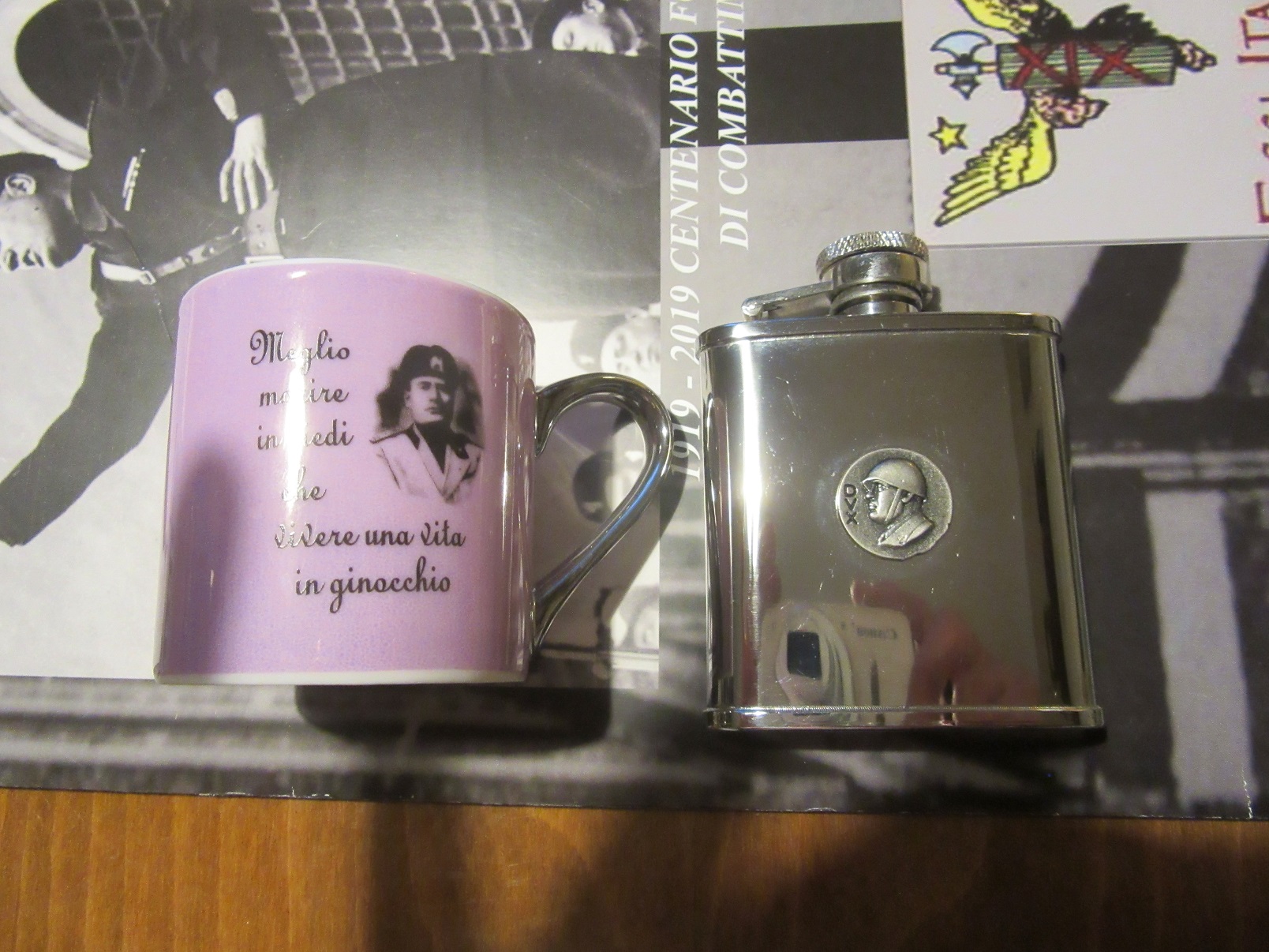 Приветствую Камрадов. Привезли из Италии, а конкретно из г-да Predappio несколько предметов. Продаю. 1. Малые (карманные) календарики по 50гр 2. Большой календарь. Высокое качество. Мелованная бумага. Много оч. интересных фотографий. Цена - 145гр. 3. Листовки в формате а-4. 2шт по 45гр. 4. Все дела Дуче. Цена 65гр. Всегда готов к разумным предложениям. В продаже, так же, фляга, чашки и тд.