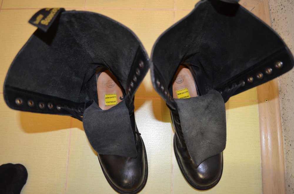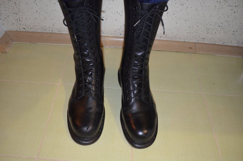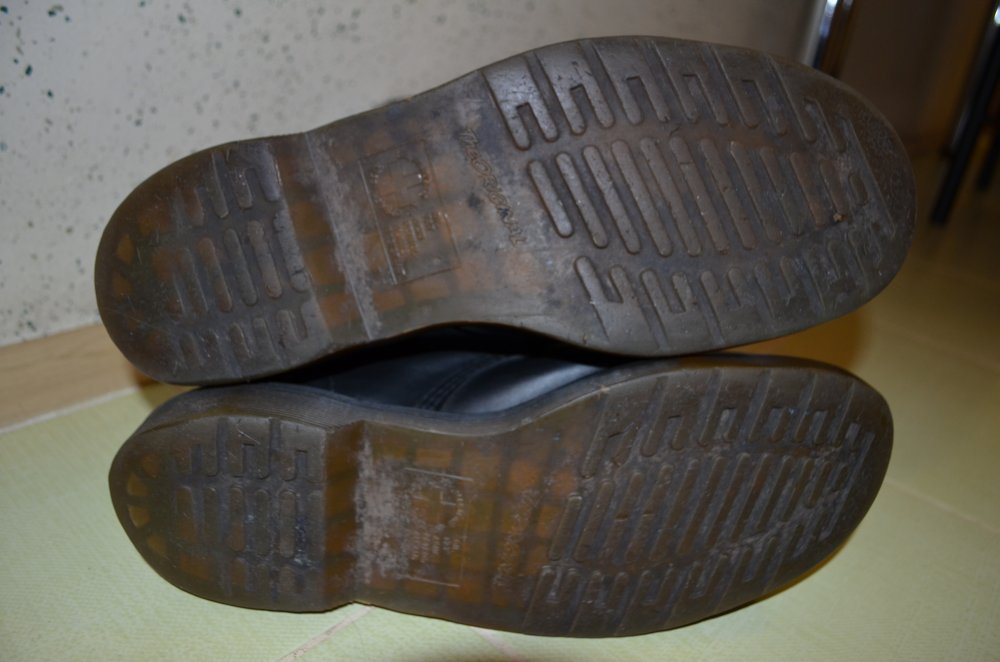 Берцы Dr. Martens 1940 Размер 43, стелька 27.5 см, высота 32 см, подошва каучук (сопротивление скольжения, жироустойка, маслоустойка ), толстая кожа, усиленный стальной носок, прошитые, ощущаются как качественные берци, хорошо смотрятся на ноге, нужна профилактика каблука, есть небольшой поверхностной порез кожи носка на правом ботинке (видно на фото) и на левом носке легкая потертость, но они на целостность ботинка не влияют. В основном добротные берци из прекрасной кожи в хорошем состоянии, очень удобные. цена – 560 грн. (новые в инете около 3 тыс. и больше) оплата на карту привата или ощадбанка – ответы в личку.