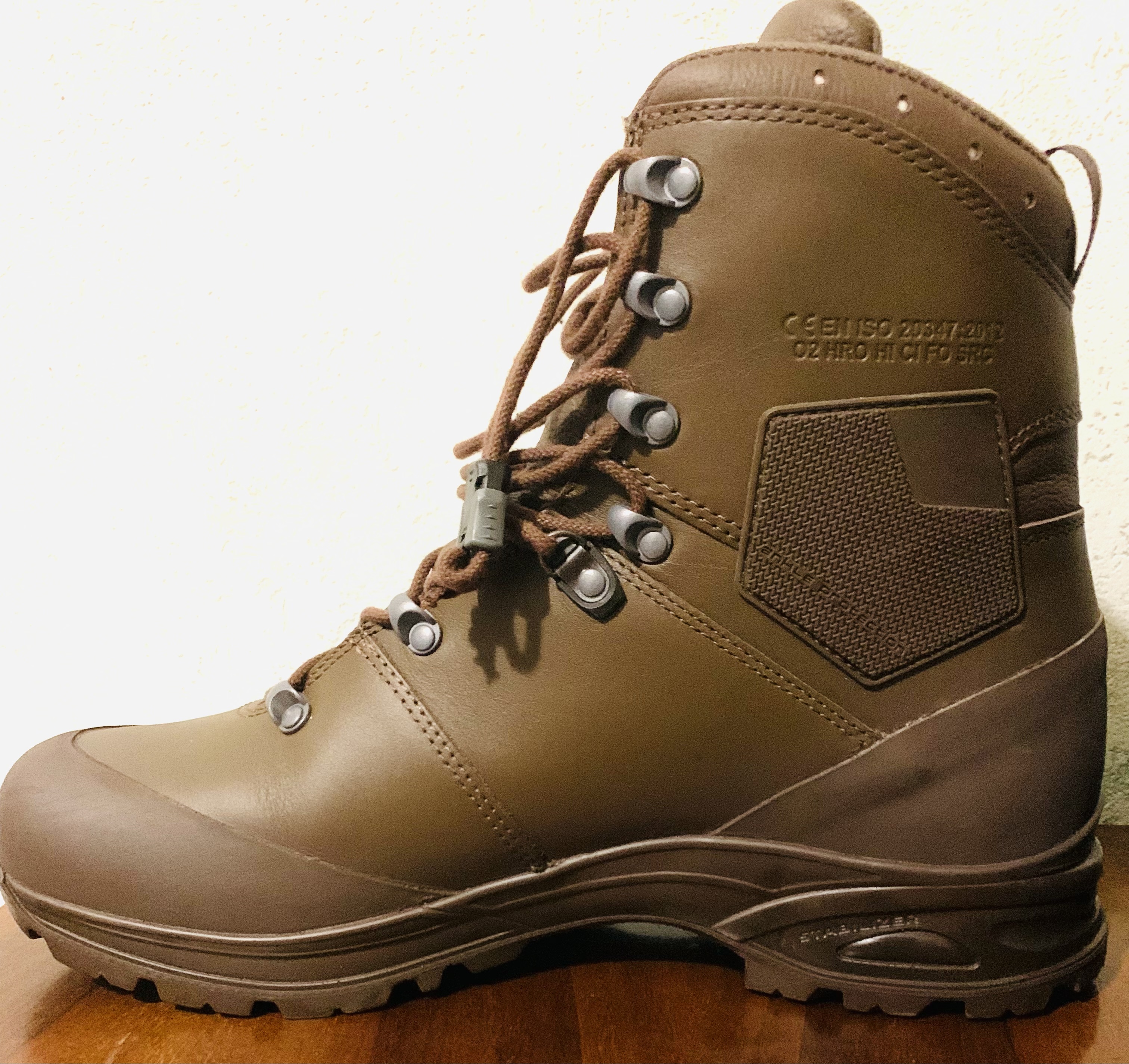 Берці (черевики) HAIX Mondo. Розмір 46 Матеріал верху - гідрофобізована водонепроникна шкіра (гідрофобізування - покращений метод просочення матеріалу для досягнення водостійкості та легкого догляду). Кліматична система HAIX - волога, що виникає, видаляється завдяки мембрані, чим забезпечується оптимальний клімат усередині черевика. Підкладка Micro-Dry на гомілкостопі виготовлена зі 100% поліефіру Внутрішня підкладка - потовідвідна Поліуретанова/гумова підошва - профіль підходить для дорожніх і бездорожних умов. Антистатична стійка до впливу масла, бензину. Не ковзаюча, зносостійка гума, стійка до холоду, не залишає слідів (не малює). PU-амортизація забезпечує високий опір ковзанню, спеціальна конструкція забезпечує правильний перекат стопи під час ходьби, хороші ізоляційні властивості від холоду та спеки. Система Haix-AS - система Arch Support забезпечує оптимальну підтримку склепінь стопи, хороше управління і надійну підтримку стопи і області в зоні суглобів. Захист області суглобів - гумові демпферні вставки. Захист носка і п'яти - гумовий рант (окантовка). Кишенька для кінців шнурків з боку. Розмір 46- ( були один раз вдягнуті ) Продається без устілок!!! Ціна 3500