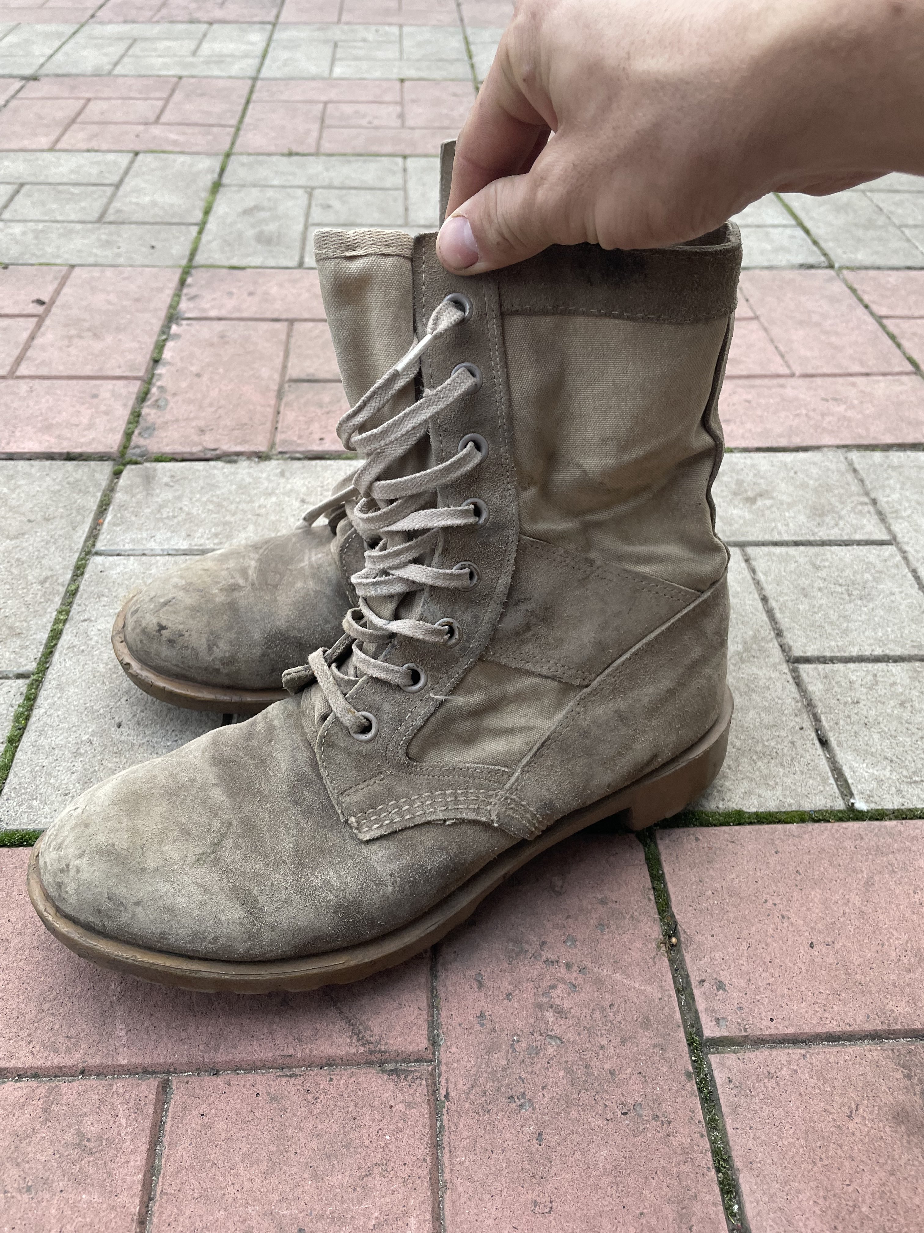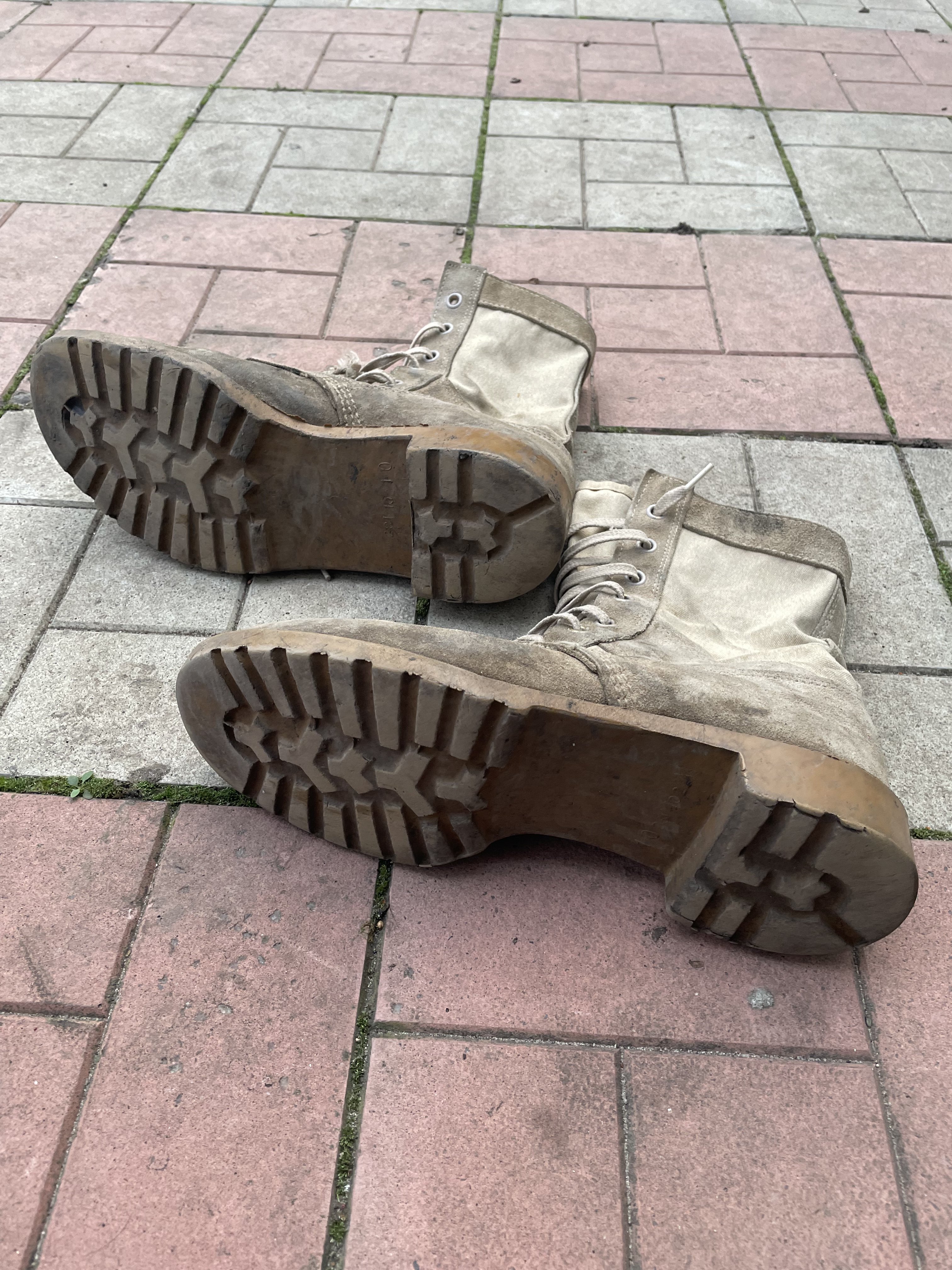 Вітаю! Ранні британські пустельні (British suede desert boots, Golf War issue), використовувались з початку 1990-х, наприклад під час "Війни в Перській затоці" з Саддамом. В секонд-хендах було багато таких раніше. Такі вже давно не випускають, невідомо, в яких умовах їх зберігали, є ризик пошкождення підошв після початку використання, тріщини тощо.