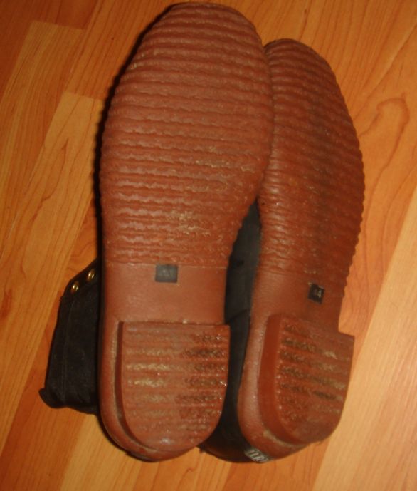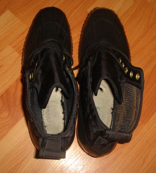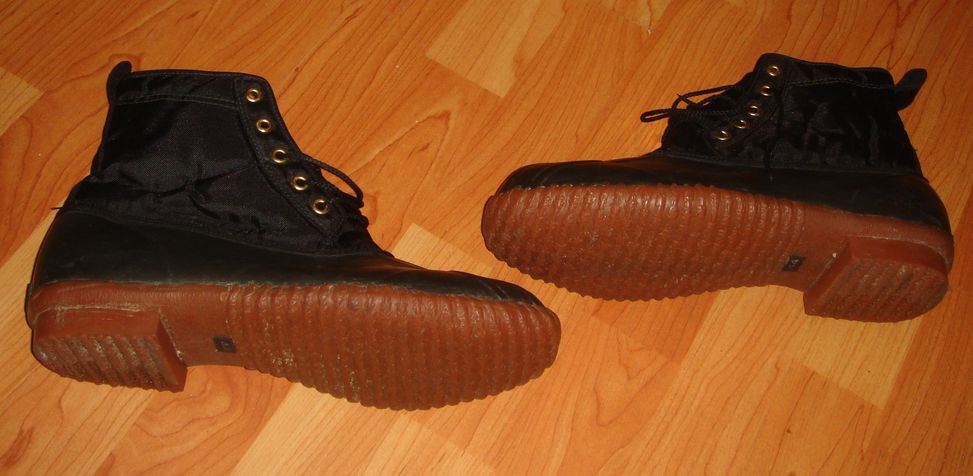 Корейские ботинки-"уточки". Прорезиненный водооталкивающий материал, изнутри утеплены. Размер 9 (классический 43-й). Состояние б.у. - на фото указал повреждение (небольшой порез, устранен). Иных повреждений не обнаружено, воду держат. Цена 100грн.