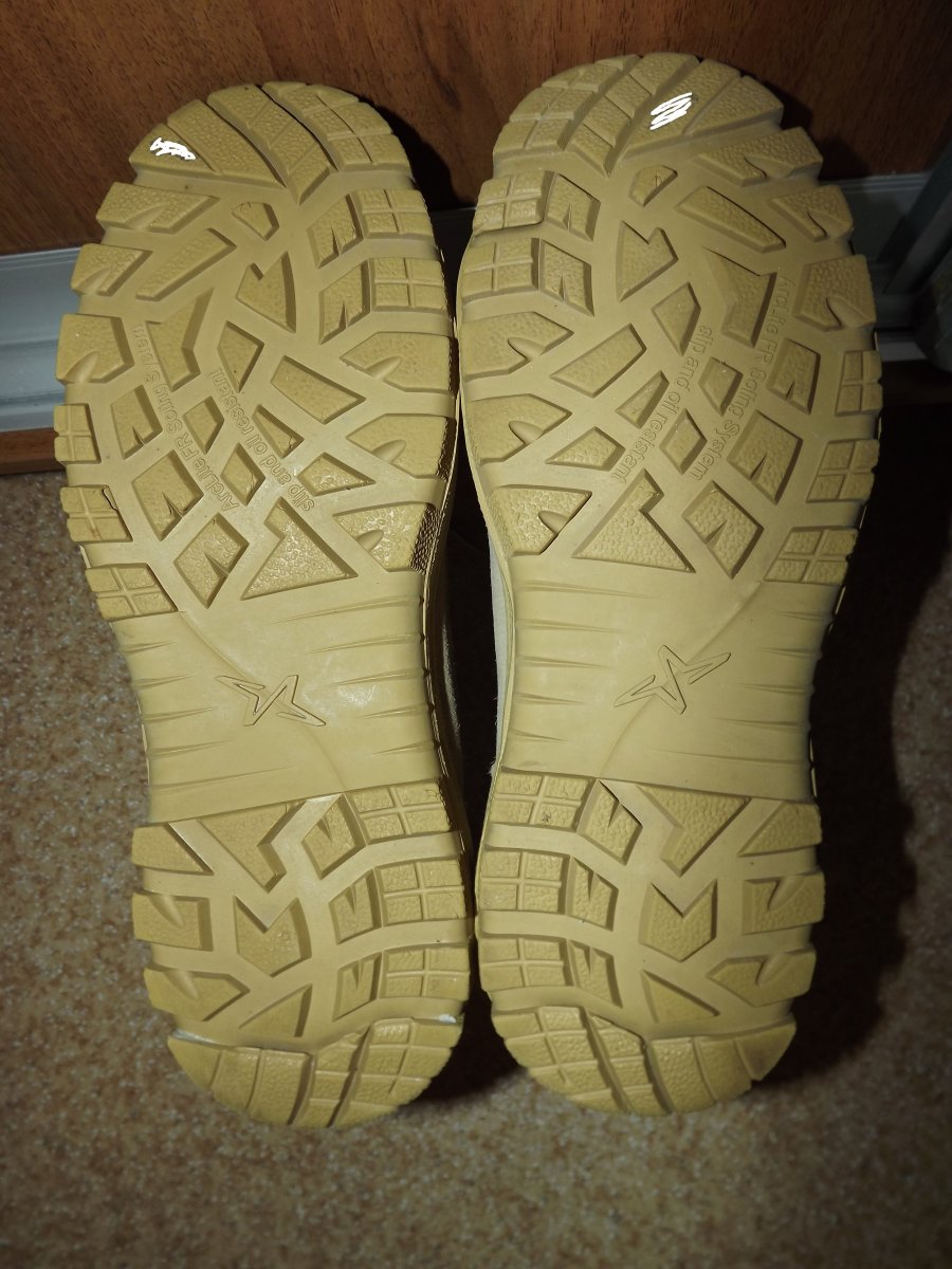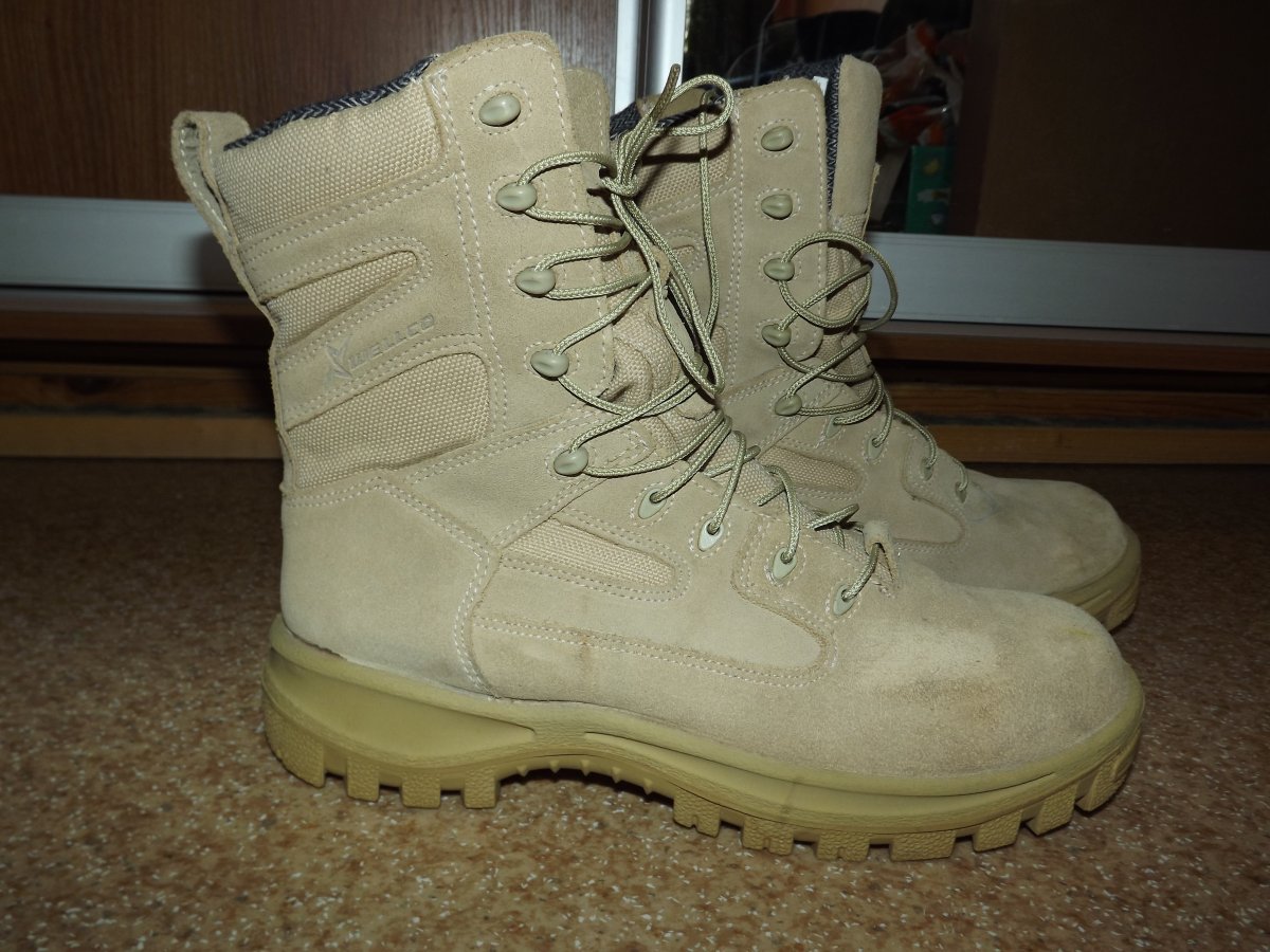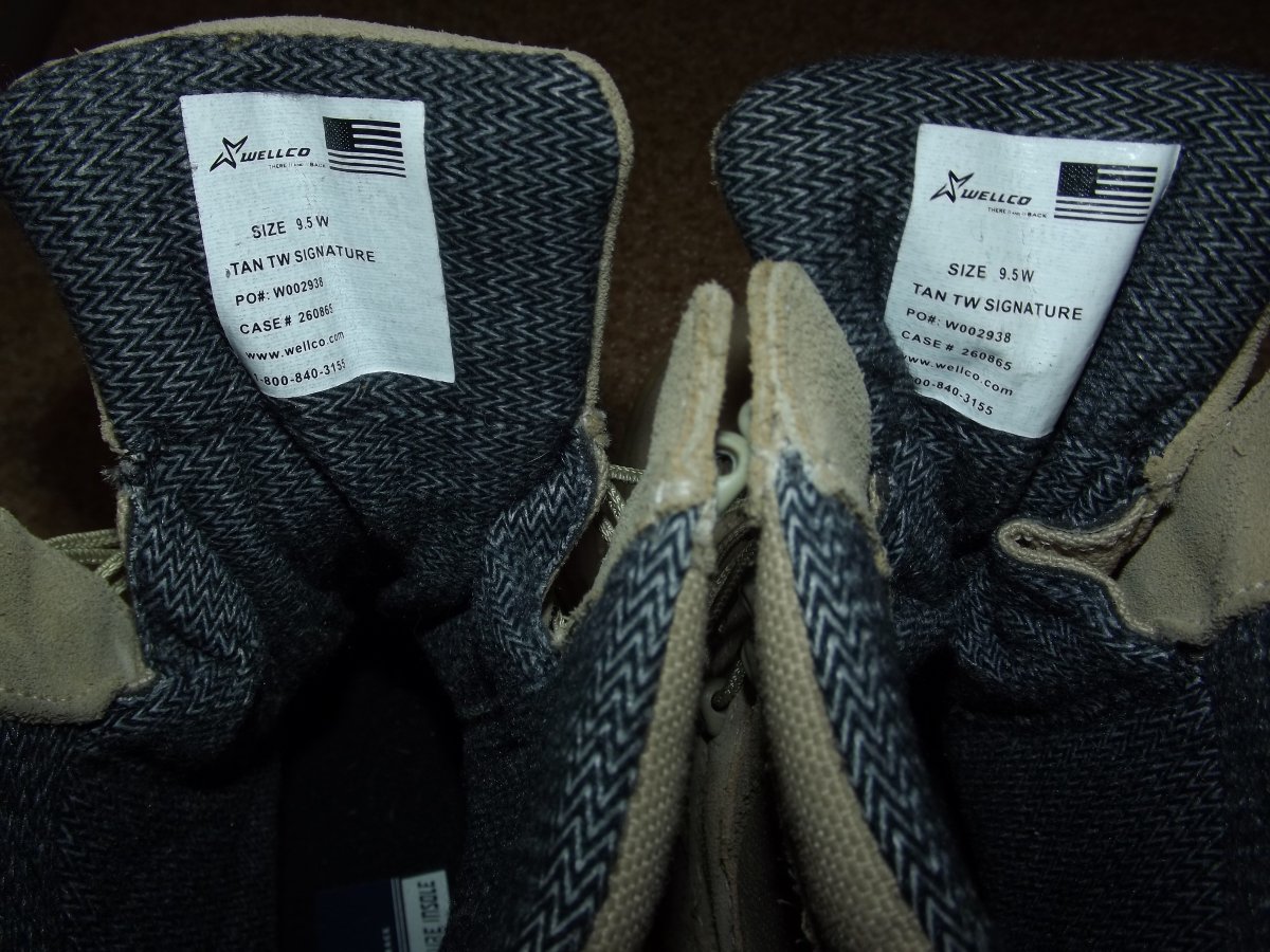 Wellco Signature Temperate Weather (Desert Tan) Tactical Military Boots, незначительное б/у, на левом ботинке в районе пятки есть небольшой изъян (фото). В остальном износ минимальный как внутри так и снаружи включая подошву. Размер 9.5 W , длина стельки около 29.2 см, ширина 9.5. Стельки высокие, поэтому для более комфортной носки есть смысл сменить на более тонкие. Помимо прочих достоинст подошва в данной модели не горючая (SOLING SYSTEM) Цена 1300 грн Проданы