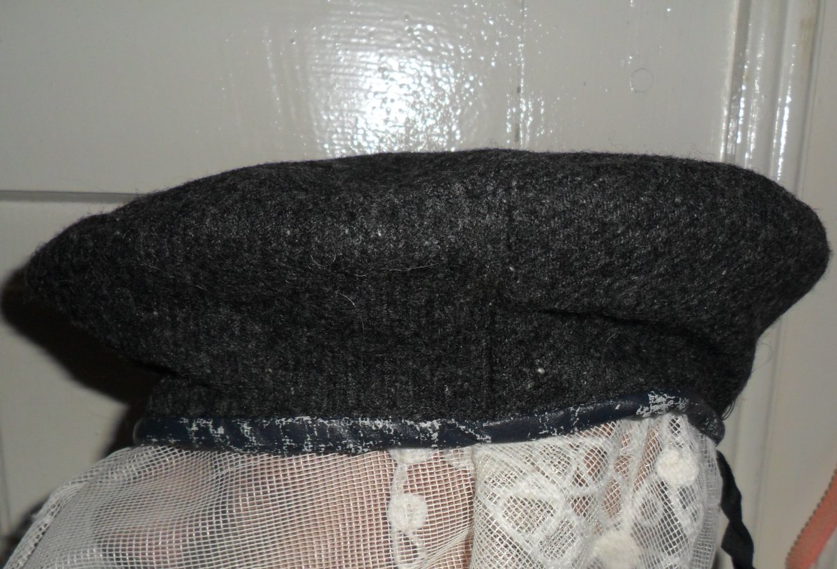 14. Берет шерстяний темно-сірий, виробник Польща, рік 1980. Стан не ношений (склад), тканина ціла, ободок місцями осипався. Розмір регулюється шнурковою утяжкою. На бирках вказано 55/56, по замірах 57 см. Ціна 100 грн.