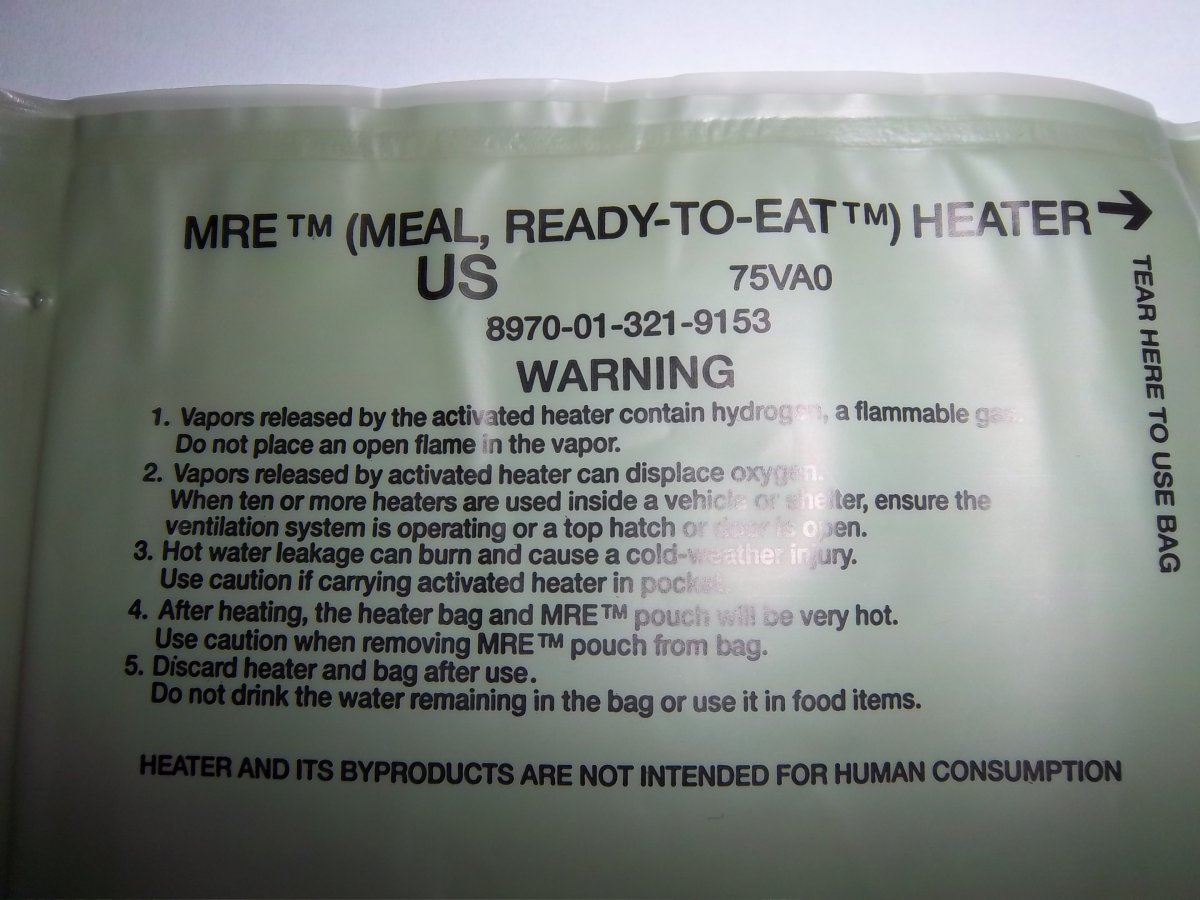 Назначение: БНП предназначен для нагрева консервированных пайков, в экстремальных и походных условиях, при отсутствии, или невозможности использования открытого огня. Время разогрева пайка примерно 6-12 минут. Принцип действия: нагревательный элемент при контакте с водой за счет экзотермической реакции выделяет тепло. Образующееся при этом тепло нагревает паек, помещенный внутрь БНП. Поставщик - США Цена: 35 грн