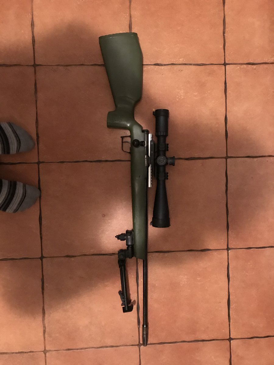 В комплекте: Би-6 22lr Установлена легкосплавная планка вивера, родное дерево покрашено какой-то хитрой краской. Два магазина (один пластиковый, один металический). Прицел Макснайп 24х50 сайд фокус. ПБС (Глушитель) - дюралевый (разборной). Сошки. Цена-700$$$ Розумный торг в ЛС.