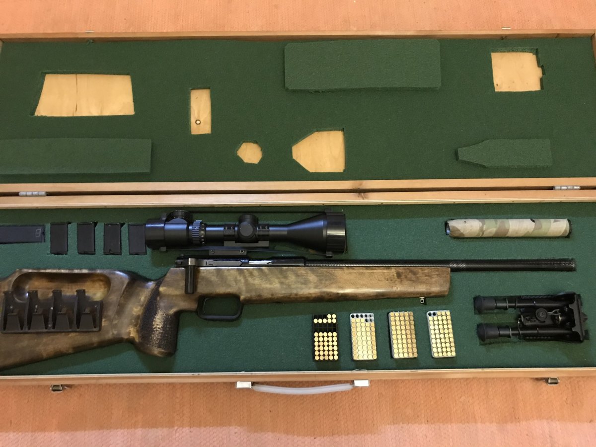 Состояние-хорошее(на фото), настрел мой-до 300 выстрелов 4*5(база) + 1*10патронов Оптика SUTTER 3-12*56E Глушитель(заказной) Сошки под антабку(есть на ствол))) Коробка+чехол Патроны+-100 в подарок Официальная продажа(только под разрешение ) 1000$