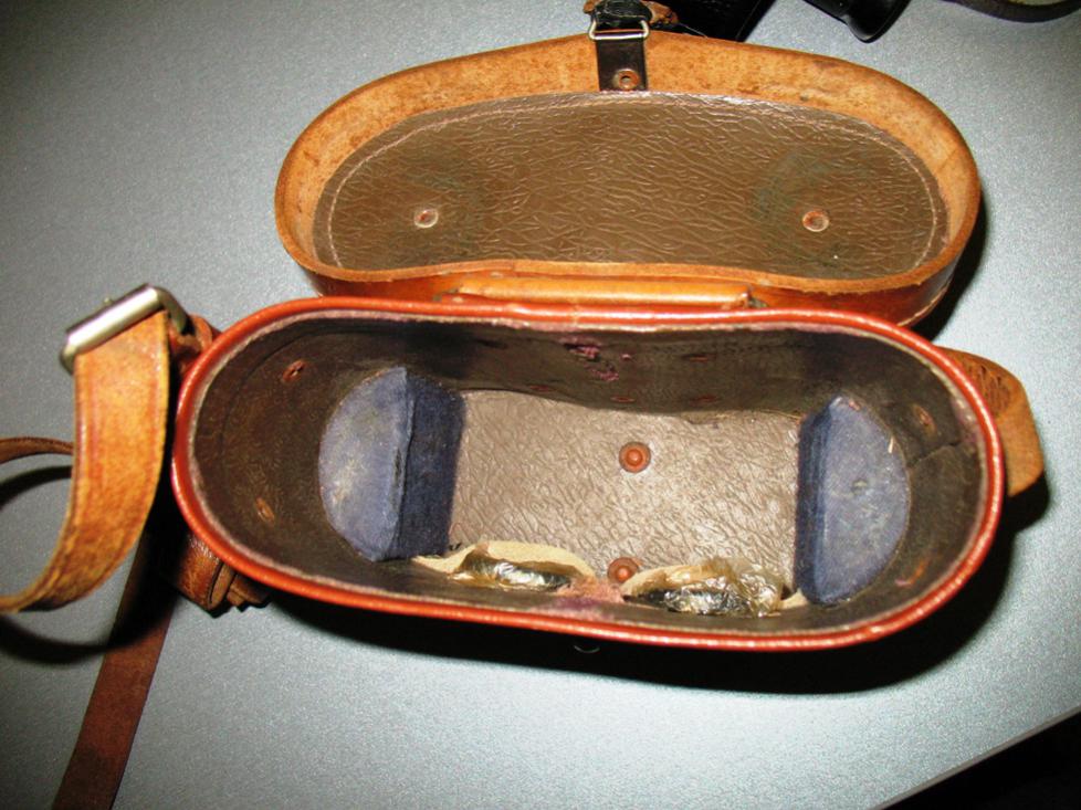 Вот такой бинокль в полном комплекте. Профилактика, на сколько я понял 1971 год. А вот дальше непонятка. На левой щеке под новым набитым номером под краской просматривается следующее *9*0 г , серп и молот , N ***21 под серпом клеймо два треугольника. Сетка в правом окуляре присутствует, линзы чистые не мутные. Крепежные болты залиты мастикой. Кофр в полном порядке, ремень на кофре кожа видно, что уставшая, на бинокле ремень в отличном состоянии. Прошу оценить учитывая выше изложенное, по годам и по цене. Будет выставляться на продажу. Сдирать краску для определения года не решился.