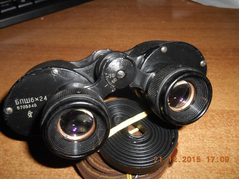 Бинокль широкоугольный БПШ 6х24 лучшая, в своем сегменте, модель в СССР. Выпущен малой партией на Казанском оптико-механическом заводе. Оптические каналы чистые,оптика без сколов,потертостей.Механика плавная,без рывков.Есть небольшие потертости на корпусе. Комплектация :бинокль,полужесткий чехол "оригинал" нат.кожа,ремешок чехла нат.кожа,шейный ремешок. Год выпуска 1967. Цена 2500 грн. Характеристики: Увеличение, крат: 6 Диаметр объектива, мм: 24 Выходной зрачок, мм: 4 Коэфициент усиления света: 16 Сумерки (фактор): 12 Поле зрения на расстоянии 1000 м, м: 201 Материал корпуса: металл Фокусировка: центральная, правый окуляр Габариты ВхШхГ, мм: 95x150x40 Вес без футляра, кг: 0.48 Дизайн прибора заслуживает отдельного упоминания. Нестандартные обводы корпуса с обратными углами, нескользящая оплетка корпуса, оригинальные призмы с зеркальным напылением, сложные широкоугольные окуляры, многослойное просветляющее покрытие на всех оптических элементах.