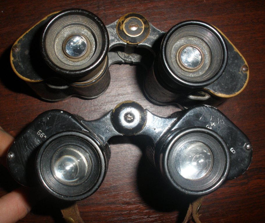 При условии хорошей оптики. Черный 8кратный 1945г.-500грн. Второй с лануневыми накладками от 300 до 600грн.,ищите клейма слева от них зависит цена.