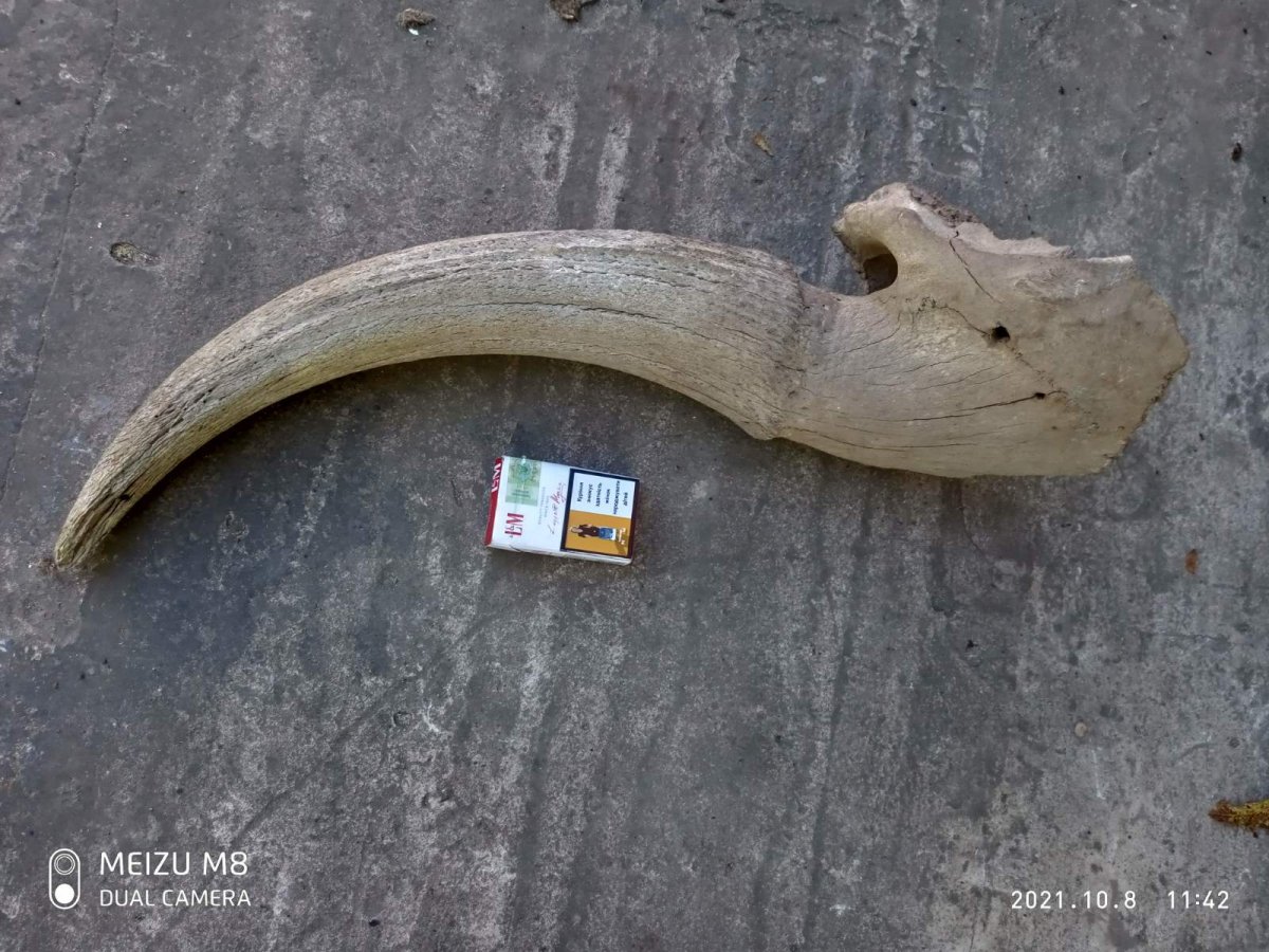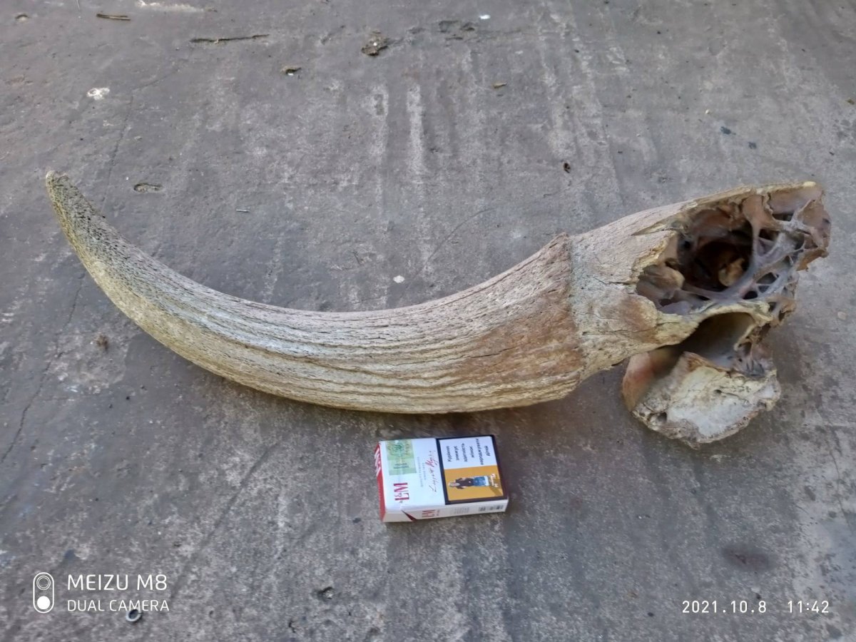 Это рог,а не бивень...Походу от КРС (возможно воловий).
