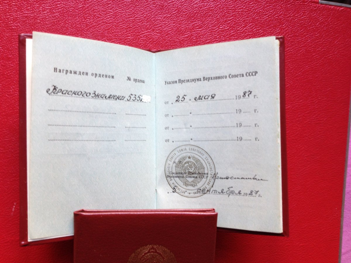 Само собой! Хотел сказать, что таблица по вручениям - она очень приблизительная, судя по ней мой орден из 1967 г.))) А он на 20 лет моложе. Это потому, что хоть Указ и за Афганистан, а орден вручали уже в Киевском ВО, вот и лежали они по округам невостребованные десятки лет... И если орден в теме соответствует таблице, то вполне мог быть, например, за Чехословакию, Вьетнам и т.д. Да и ННГ нельзя исключить. Короче, ТОЛЬКО пробивка даст ответ!!!