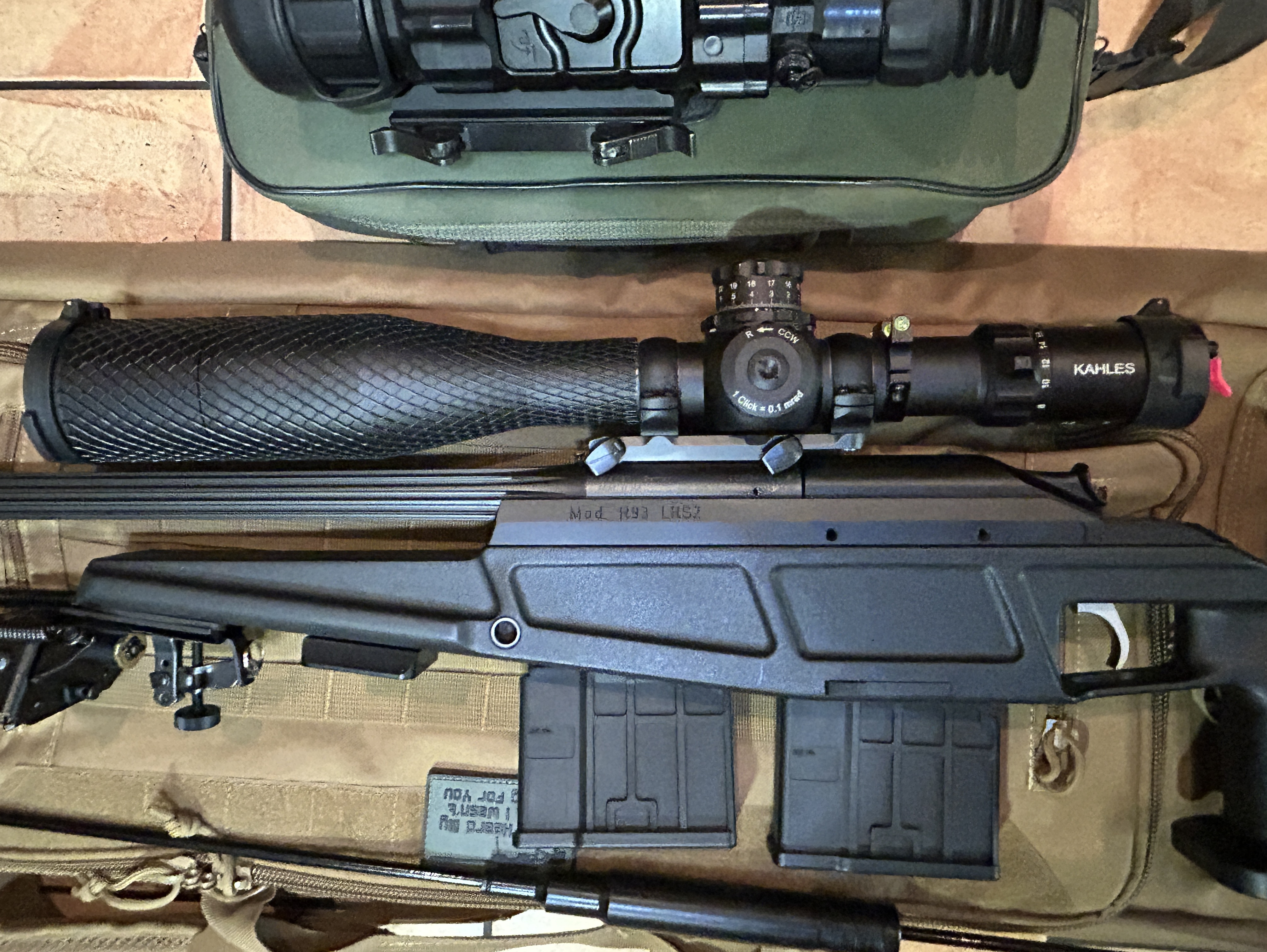 Продам снайперський комплекс: - гвинтівку Blaser LRS-2, кал.308win., 627мм, 1:11", настріл 2500шт., ствол оригінальний комплектний не перестволявся, стан ствола і затвора – ідеальний. Єдиний власник, є паспорт на гвинтівку, була придбана в «Ібісі». - приціл оптичний Kahles K 624i CCW 6-24x56 MSRw-left, 0.1MRAD + бленда Kahles . Стан всього приціла - майже новий; -тепловізійний приціл Archer TSA-5R/336-55- стан ідеальний, акумулятор треба замінити, працює від елементів живлення 6шт. АA, (можу продати окремо): - два магазини, магазин на 5 патронів, оригінал Blaser; - додатковий високий кронштейн під щоку для використання з тепловізором; - ДТК оригінал Sako, або можу укомплектувати кращим по типу APA; - кронштейн швидкоз’ємний оригінальний Blaser 34мм; - швидкоз’ємний кронштейн-рейка Weaver (Picatinny) оригінал Blaser; -сошки Harris Bipod S-BRM 6”-9”; - шомпол Dewey .30, 40''; -вставка для чистки, для захисту патронника під час чистки; -чехол колір TAN; Ціна за комлекс – 10,9тис$ Дозвіл на зброю надано модератору. Продажа гвинтівки через дозвільну. Гвинтівка на війні не була. За будь якими питаннями - прохання писати в особисте. *** Також продаю лазерний далекомір Vectronix PLF10. Тема: https://reibert.info/threads/dalekomir-vectronix-plf10.1532177/