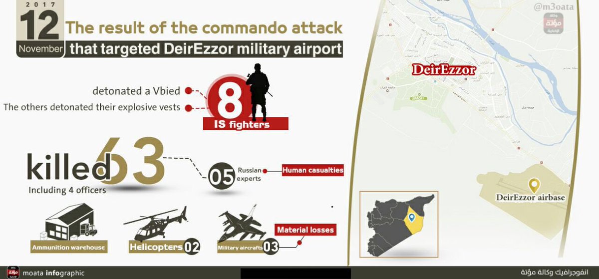 Игиловцы выложили инфографику результатов их нападения на аэродром под Дейр эз Зором 12 ноября. Как правило они не врут. Впечатляет.