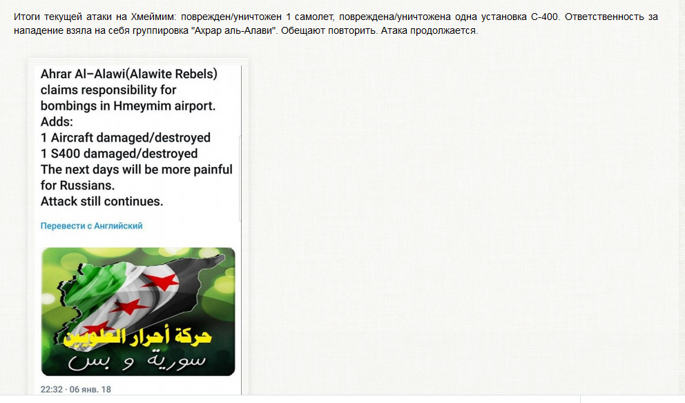 Ось, оце атака бармалєїв. Атакували 06.01., і відразу заява: