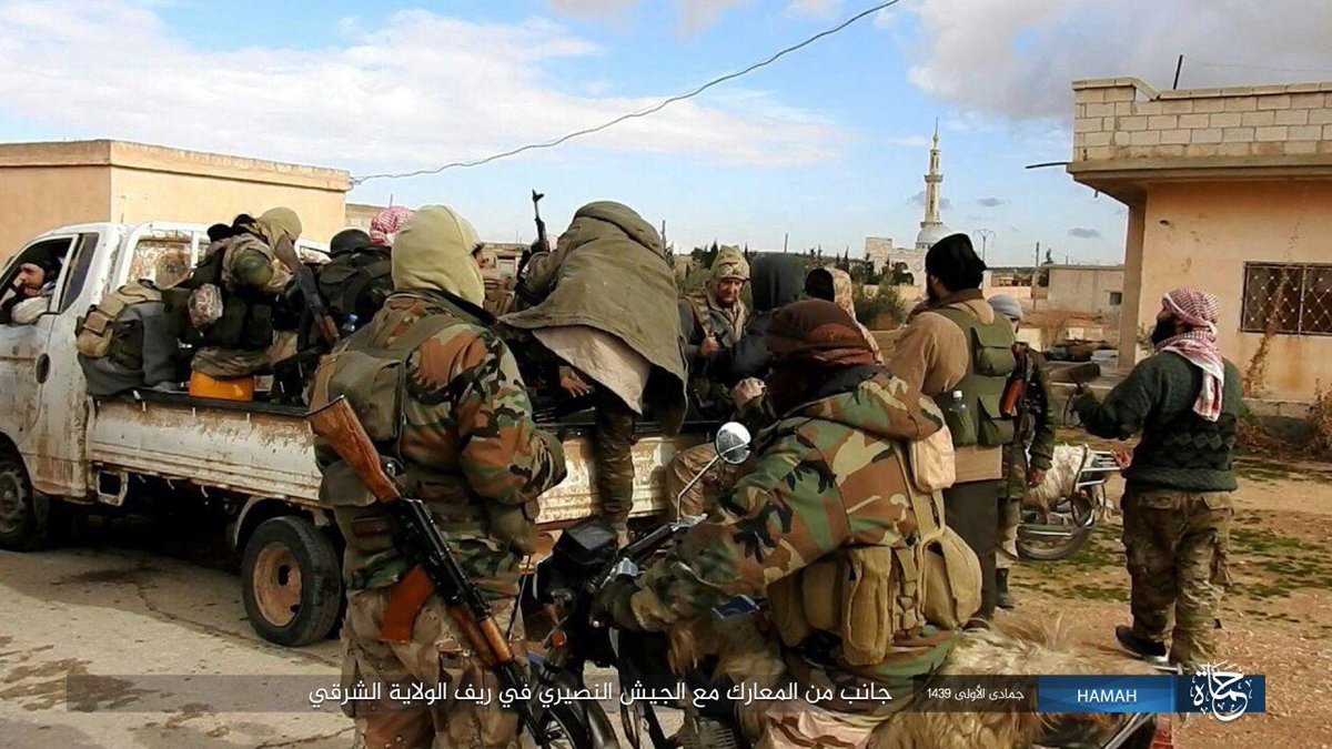 ИГИЛ опубликовали фото прибытия новых бойцов из Дейр Зора (через территорию режима) на север Хама и юг Идлиба (свежая униформа, оружие итд.) DT3C4FyX4AE4fS8.jpg DT3C4FxWkAAFLK_.jpg