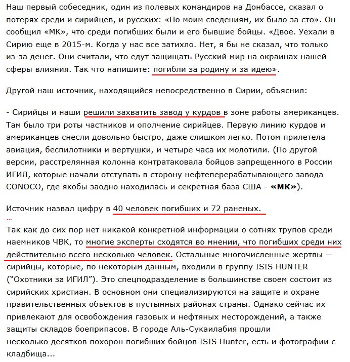 Заметили?во второй истории кацапня уже прорвала АМЕРИКАНСКУЮ линию обороны,причём "снесли легко". И если б не вертолеты..то не избежать победы.. Сейчас в малых дозах,но в возрастающем количестве,типа из многочисленых интервью,сообщений выживших,а их может оказаться дохрена,для внутриватного электората будут двигать мыслю,что расиянцы в рукопашной Парвали пендосов в тряпки,привезли путину боевое знамя первой кавалерийской дивизии и ваще,бывшие трактористы и шахтеры разметали весь пиндосский спицназ и это при атаках с воздуха,а если б ишшо и ПЗРК были... Поэтому будут замалчивать и преуменьшать потери. Будут требовать пруфы,видео.. Понятно что видео не будет,мудачью было не до съёмок, А записи предположим,с вертолетов или с тех же американских позицый,где действительно,есть доказательства разгрома именно кацапни,умные люди из пентагона и конгресса приберегут.поверьте,они позже очень пригодятся..