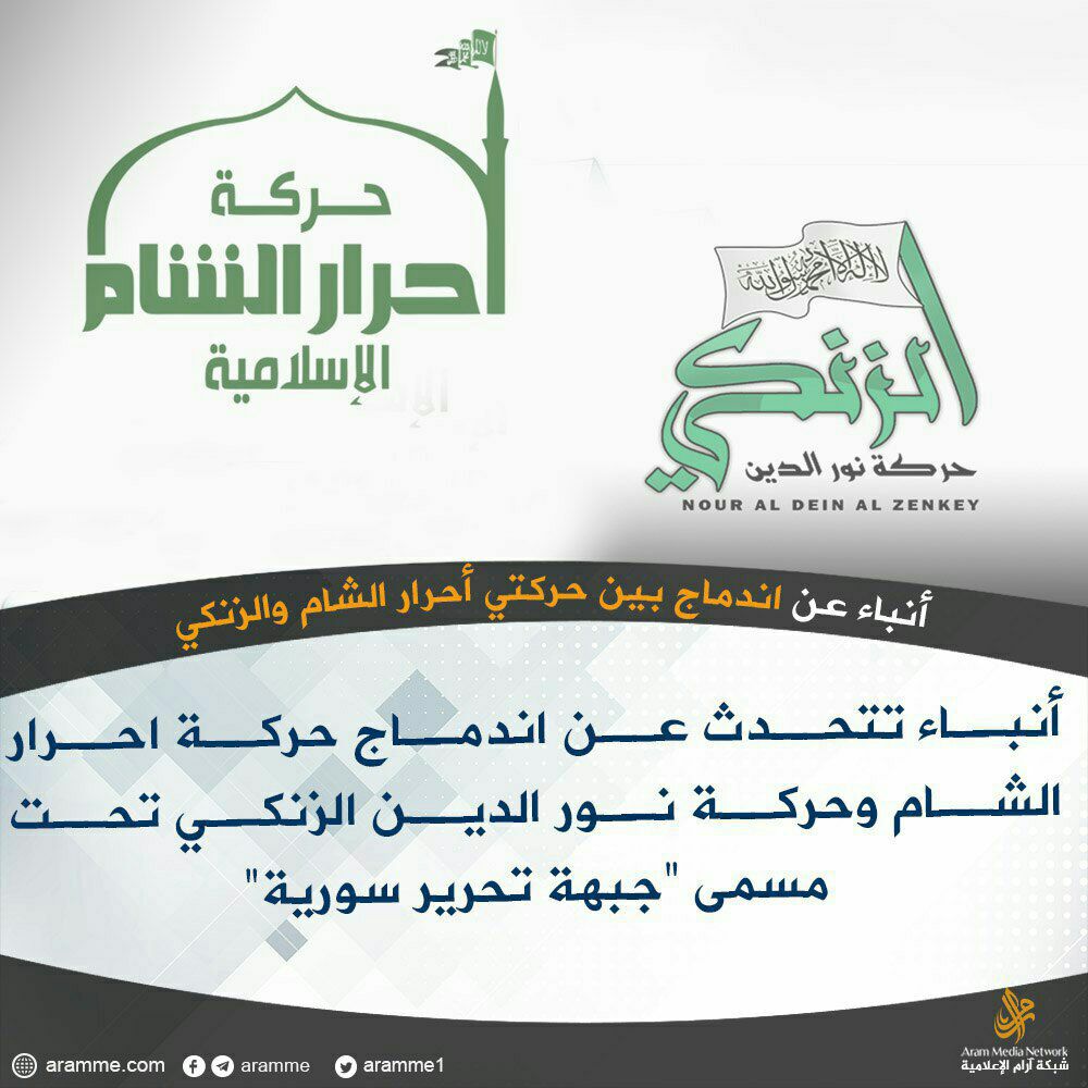 Ахрар аш-Шам и Нуруддин Зинки объявили о слиянии в одну группу под названием "Джабхату Тахрир Сурия". Лидером нового объединения стал Джабир Али Баша (бывший наиб амира Ахрар аш-Шам). Его наибом стал Тавфик (бывший лидер Зинки).