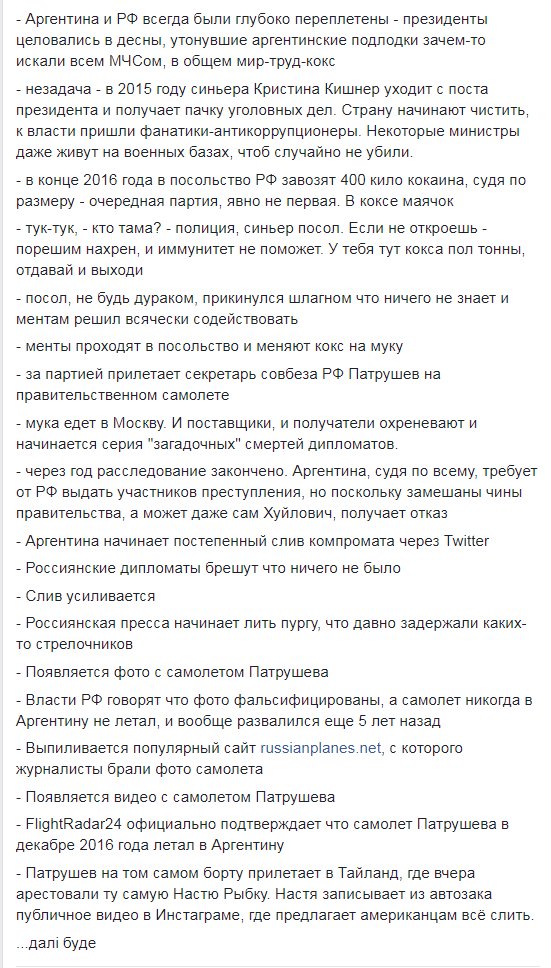 Патрушев на кокаиновом самолёте 96023 прибыл в Таиланд. з.ы. давайте ещё раз: правительственный самолет, на котором возили кокаин из аргентины, полетел в тайланд, чтобы успеть забрать белорусскую проститутку, которую трахал на яхте дерипаски зампред правительства, раньше, чем до неё доберутся американцы Кто быстрей, патрушев или американцы?