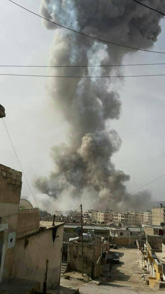 Ребелы вещают. Но кроме мутного фото никаких пруфов нет. #СРОЧНО Сообщается, что военный самолет СУ-24 рухнул после взлета из авиабазы "СИН" на востоке Каламуна -Момент сбития военного самолета Су-24 в Восточном Каламуне силами #ССА https://pp.userapi.com/c824...