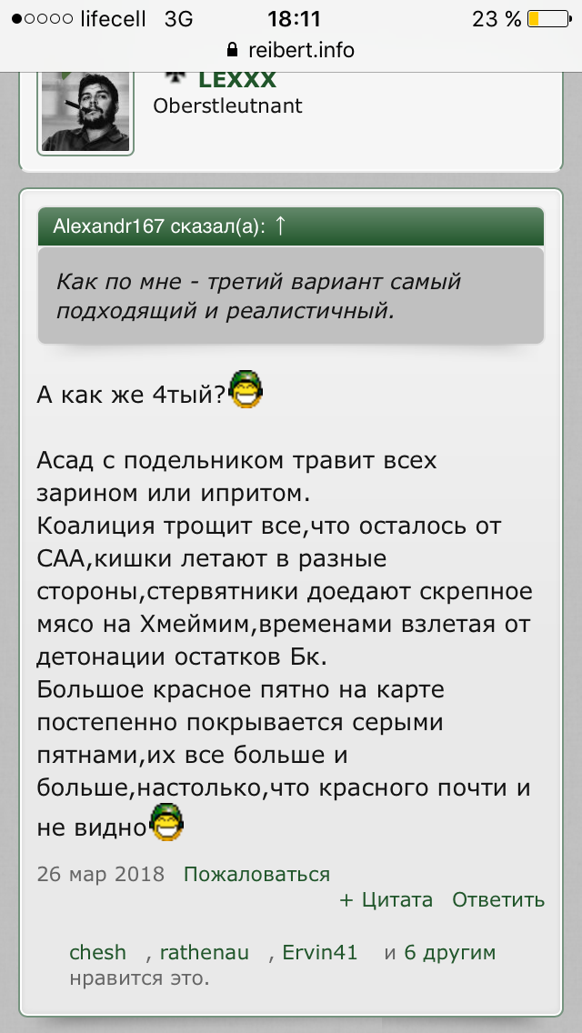 Мне вот интересно что если вдруг при ударе сша и коалиции надают "случайно" по щам камцапам... что мутнорылые будут делать? это ж попробуй разбери кто именно попал - такой хороший шанс нагнуть раком парашу - не будут же свинособаки против всех буром переть, силенок то не хватит, а если и рыпнутся могут и всю свою группировку в песок закопать)) или они в совбезе оон наложат опять вето?
