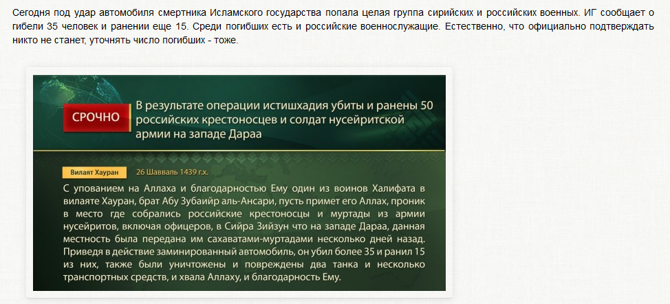 Чем больше они себя в Сирии взорвут и уничтожат самоподрывом ихтамнетов, тем нам лучше. Меньше ихтамнетов приедет к нам ну и уменьшение стороников ИГИЛ